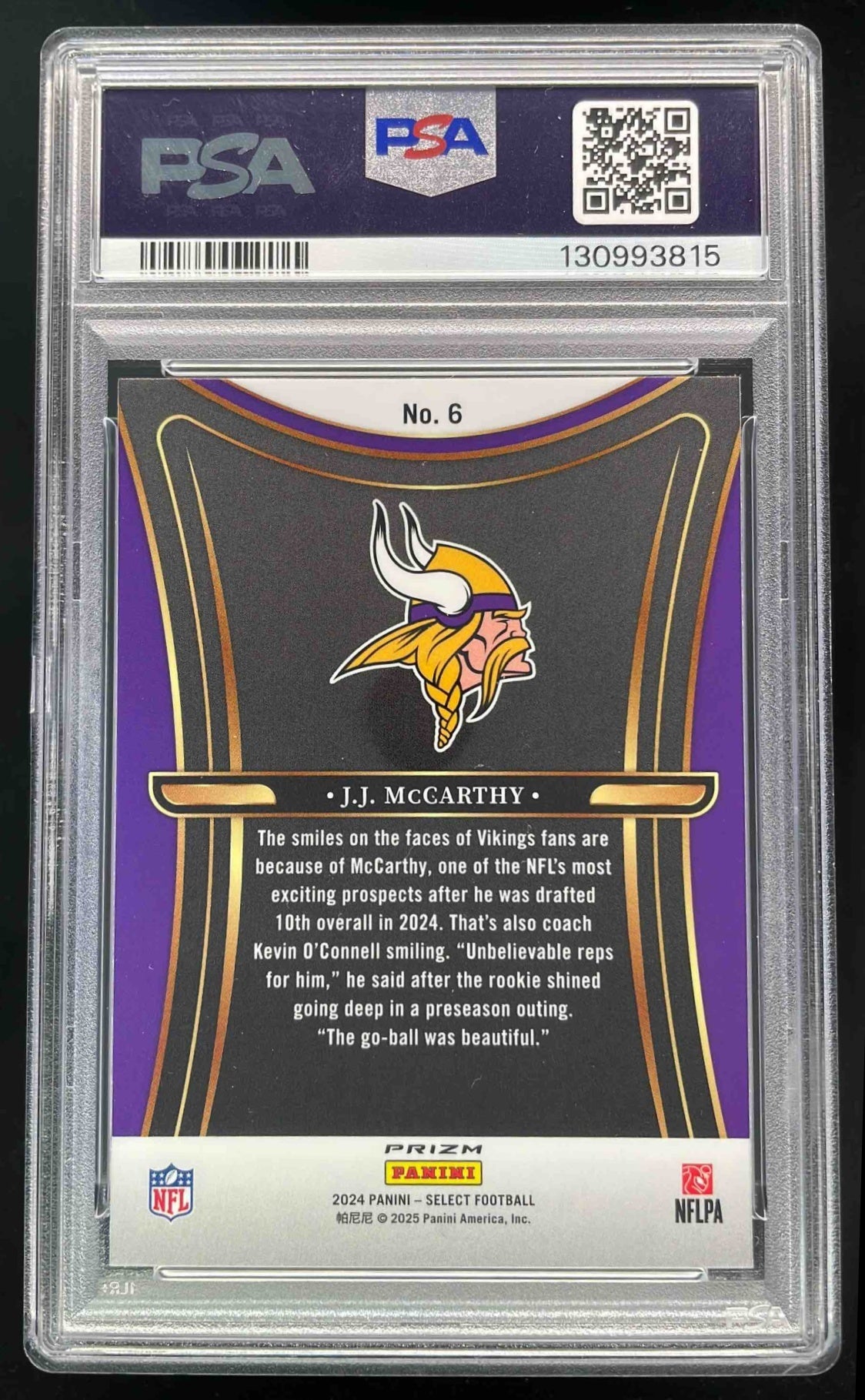 2024 Panini Select Phenomenon Prizm #6 J.J. McCarthy RC PSA 10