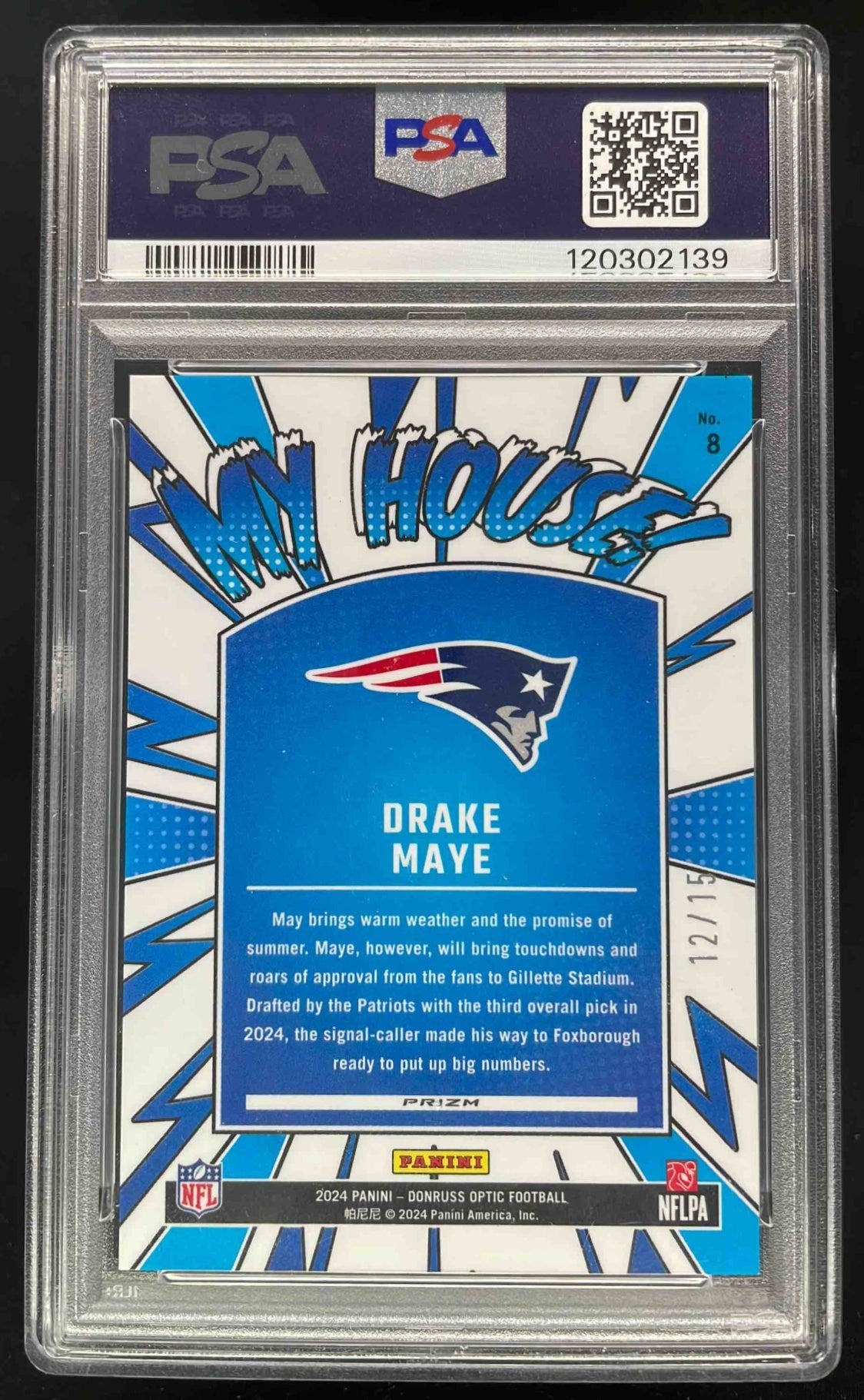 2024 Panini Donruss Optic My House! Ice #8 Drake Maye RC /15 PSA 9