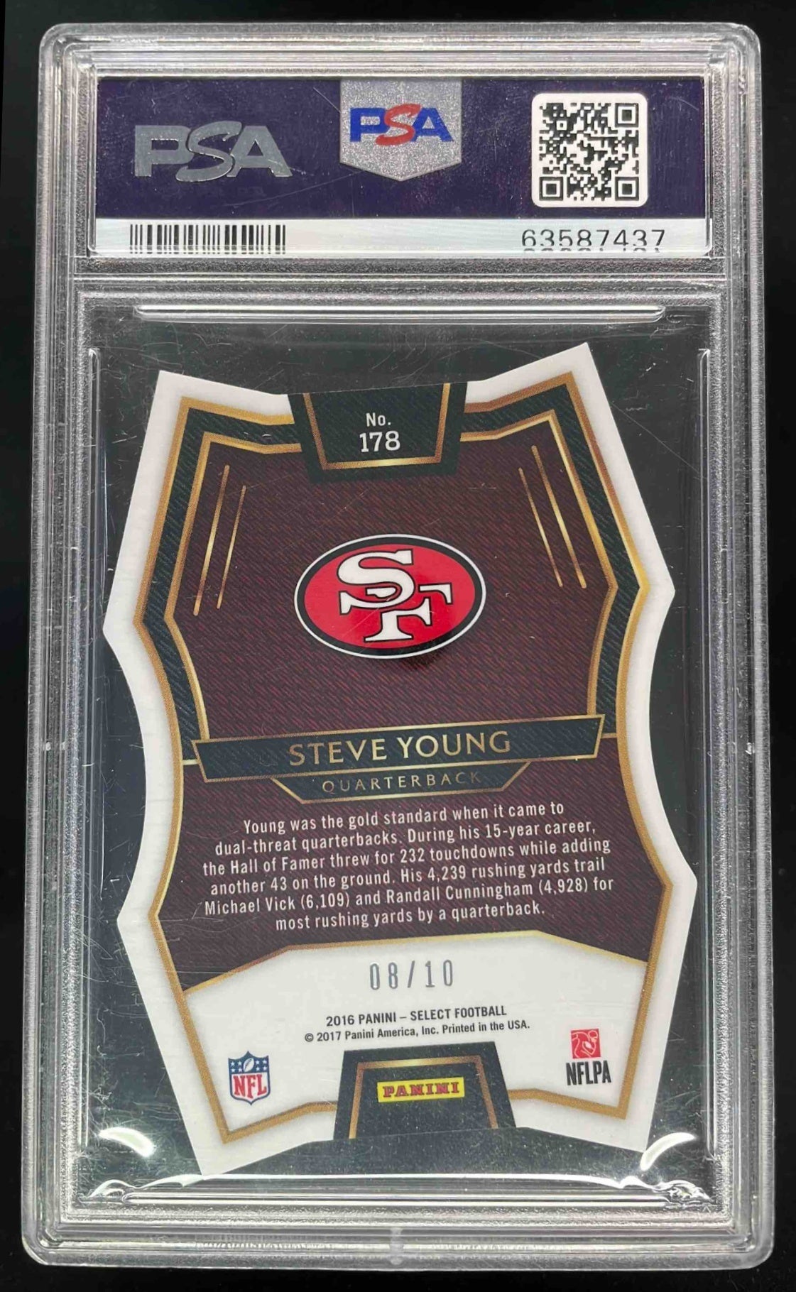 2016 Panini Select Gold Die Cut Prizm #178 Steve Young Premier Level /10 PSA 6