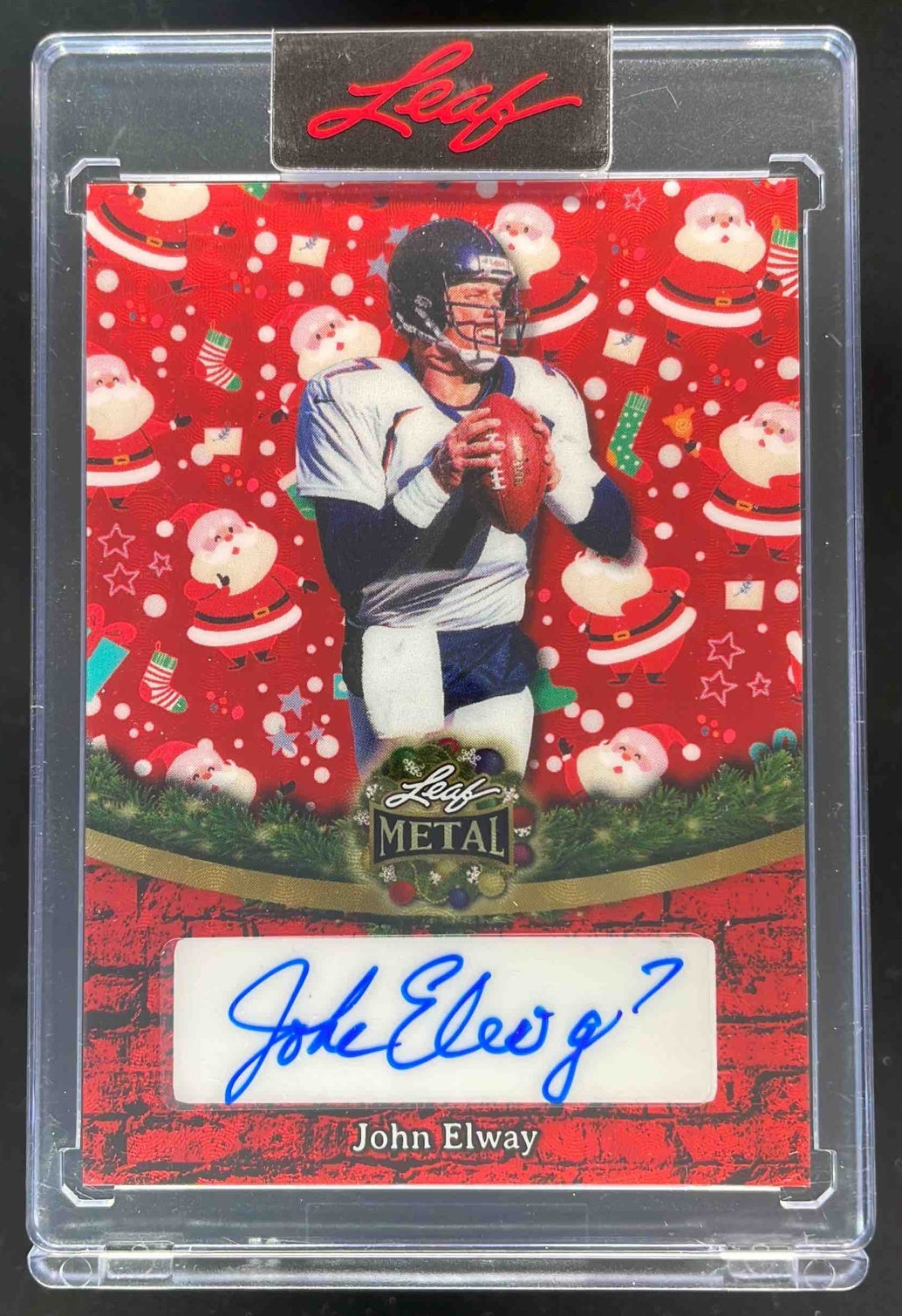 2025 Leaf Metal Happy Holidays Auto Red Flood Santa #BA-JE2 John Elway Auto 1/1