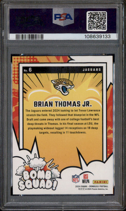 2024 Panini Donruss Bomb Squad Holo #6 Brian Thomas Jr. /100 PSA 9
