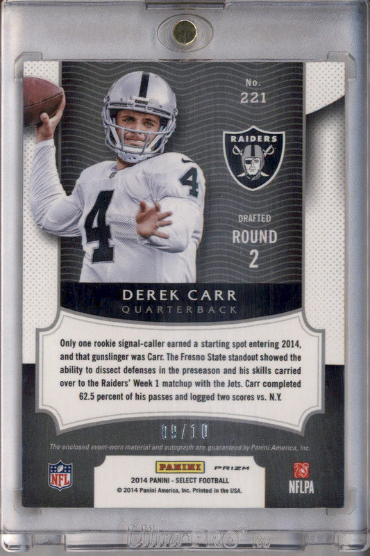 2014 Panini Select Prizm Gold #221 Derek Carr RC Auto /10