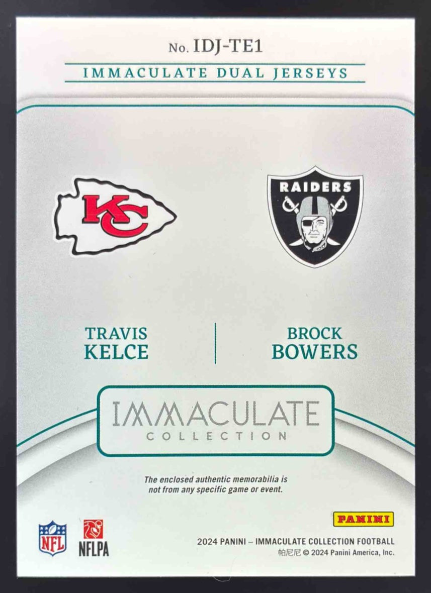 2024 Panini Immaculate Immaculate Dual Jerseys #32 Brock Bowers Travis Kelce /49