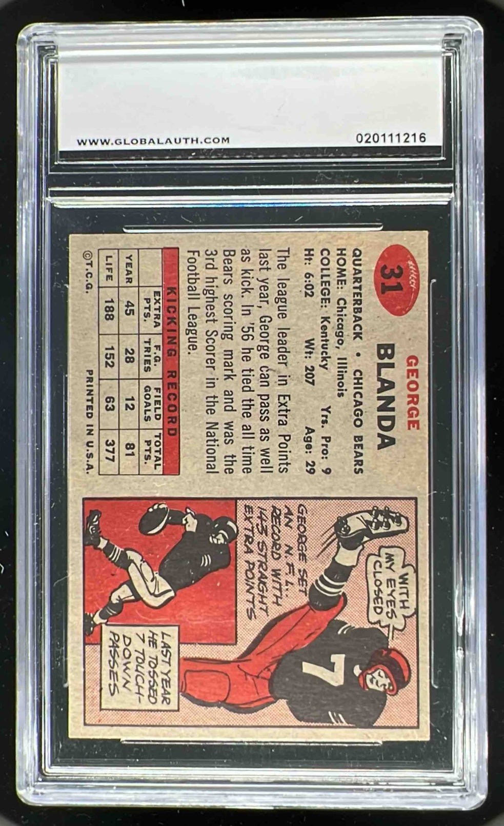 1957 Topps #31 George Blanda GAI 6