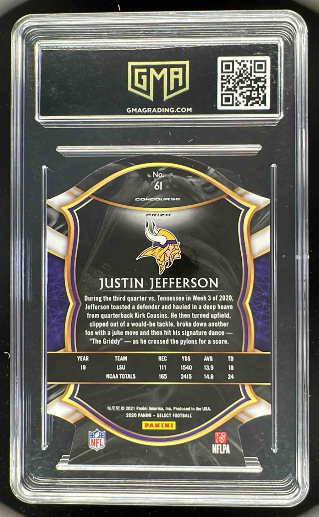 2020 Panini Select Blue Prizm Die Cut #61 Justin Jefferson RC Concourse GMA 8.5