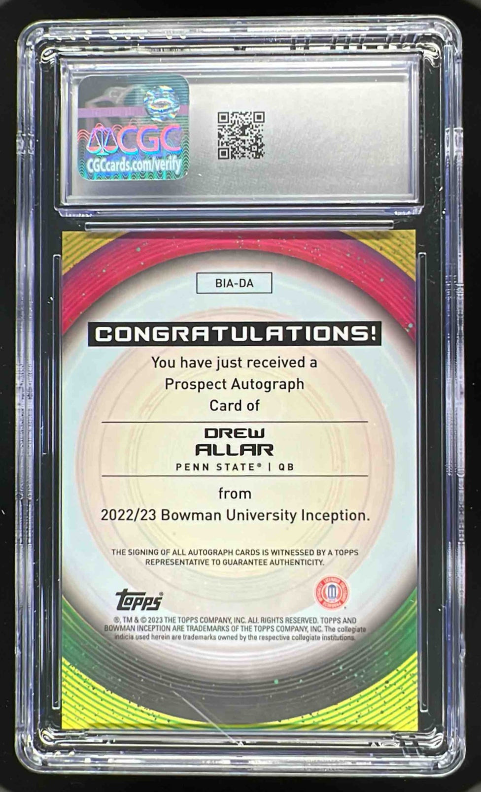 2022 Bowman University Inception Autographs #BIA-DA Drew Allar Auto CGC 10