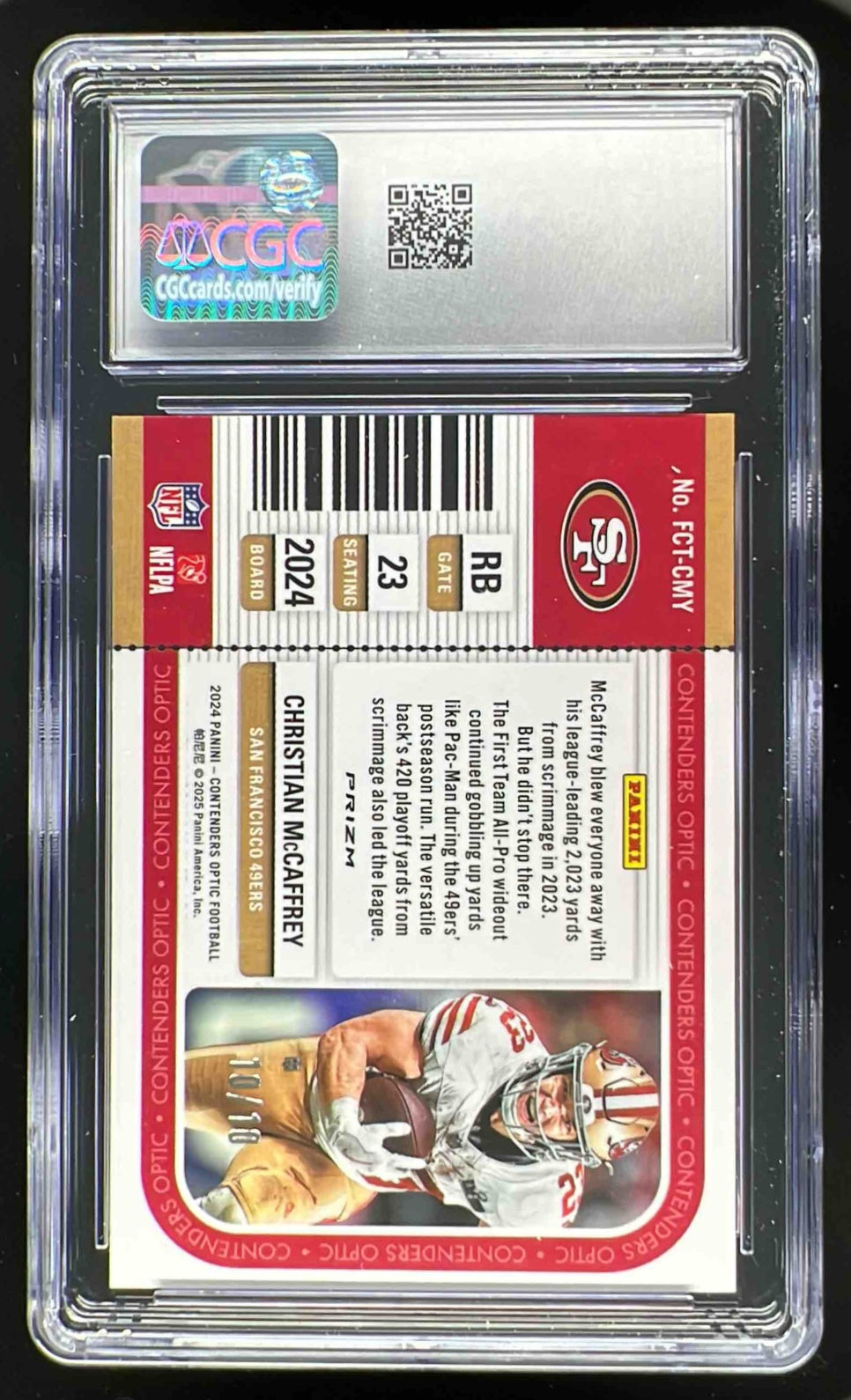 2024 Contenders Optic First Class Ticket Gold Christian McCaffrey /10 CGC 10