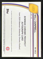 2024 Bowman Chrome University Stealth Refractor #PA-WCA Will Campbell Auto