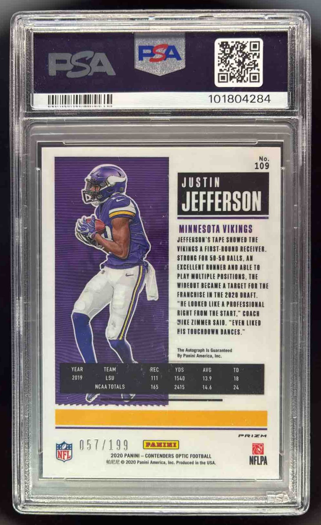2020 Contenders Optic Red #109 Justin Jefferson Autograph RC Auto /199 PSA 9