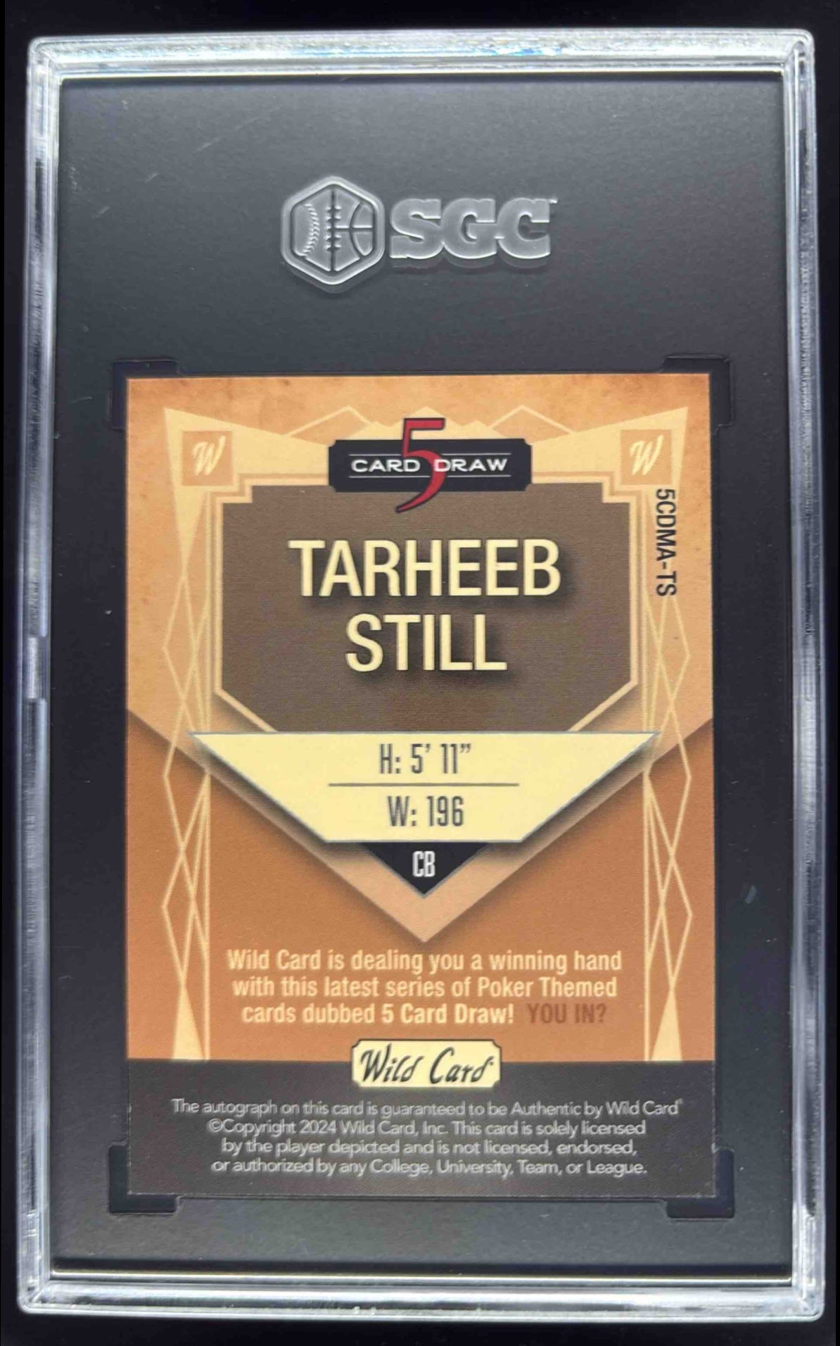 2024 Wild Card 5 Card Draw Sparkles Orange/Red Tarheeb Still Auto /5 SGC 9