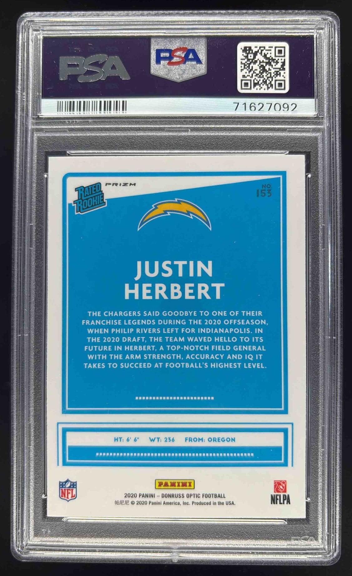 2020 Panini Donruss Optic Green Velocity Prizm #153 Justin Herbert RC PSA 10