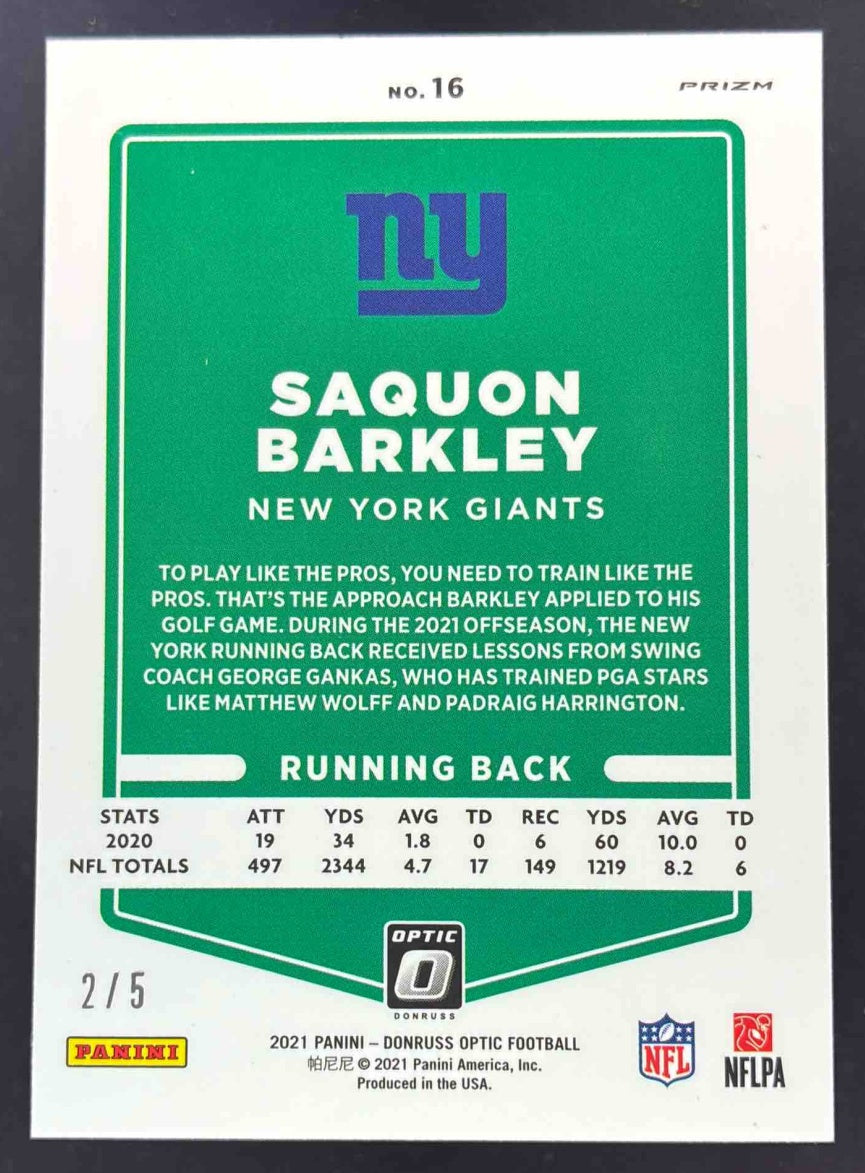 2021 Panini Donruss Optic Green #16 Saquon Barkley /5