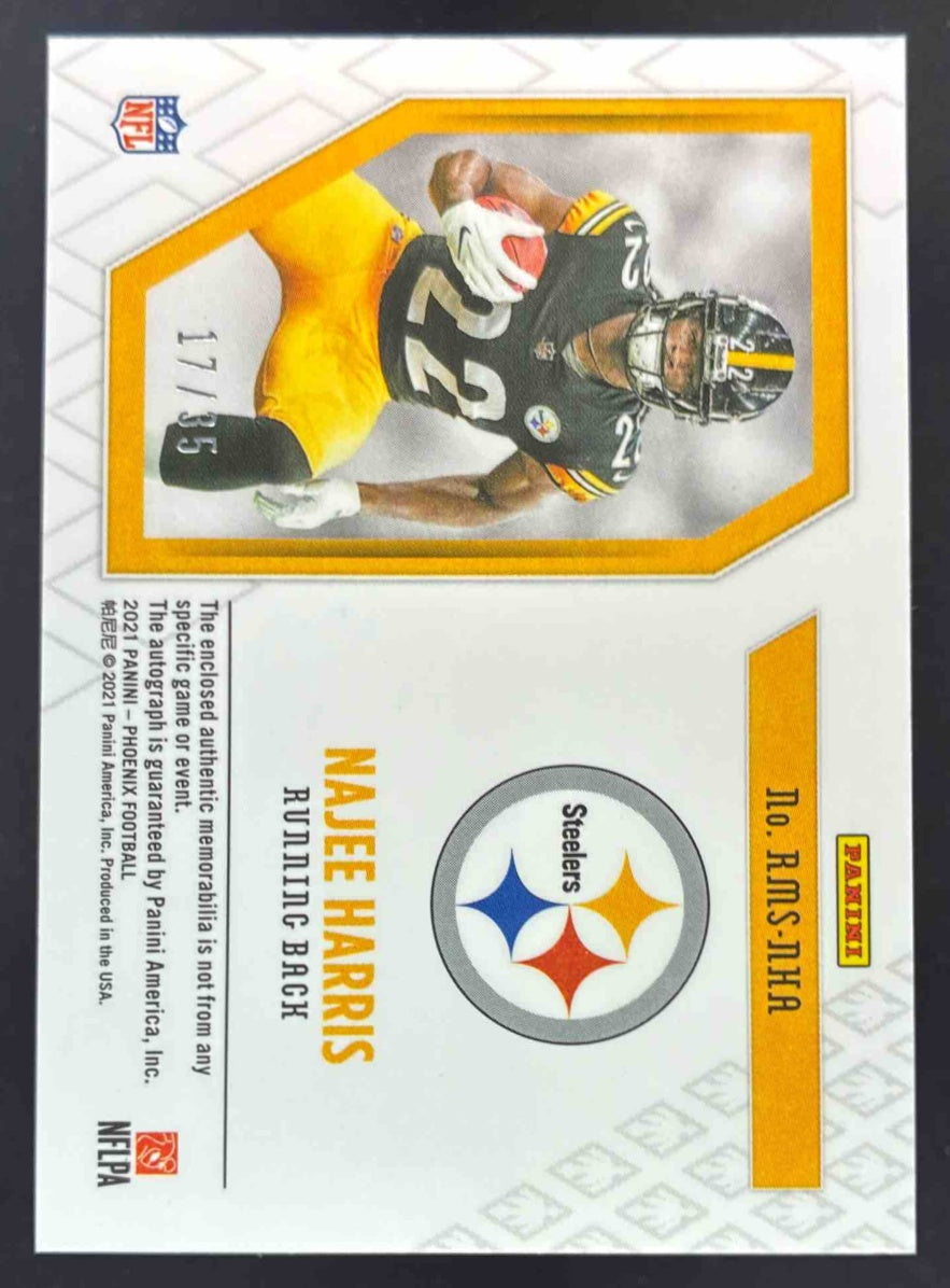 2021 Panini Phoenix Rising Rookie Material Gloves Najee Harris RC Auto /35