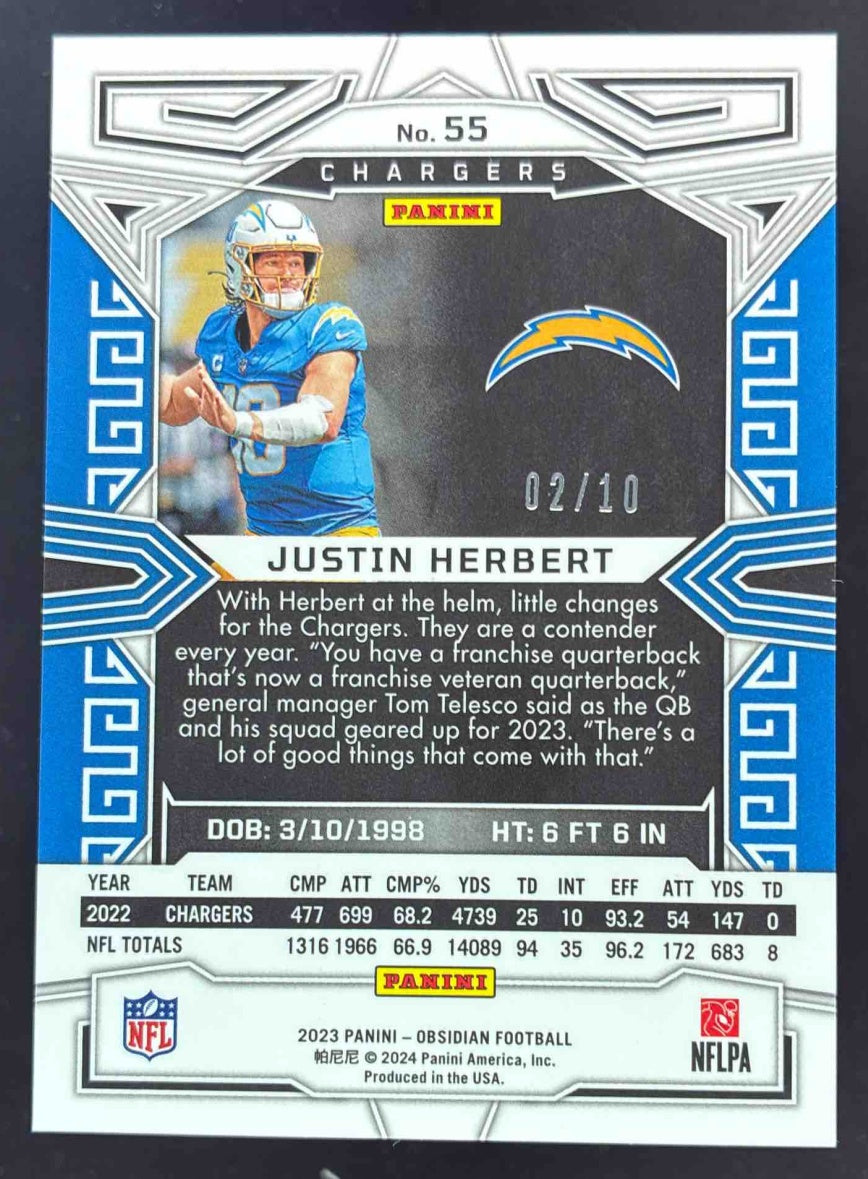 2023 Panini Obsidian Electric Etch Yellow #55 Justin Herbert /10