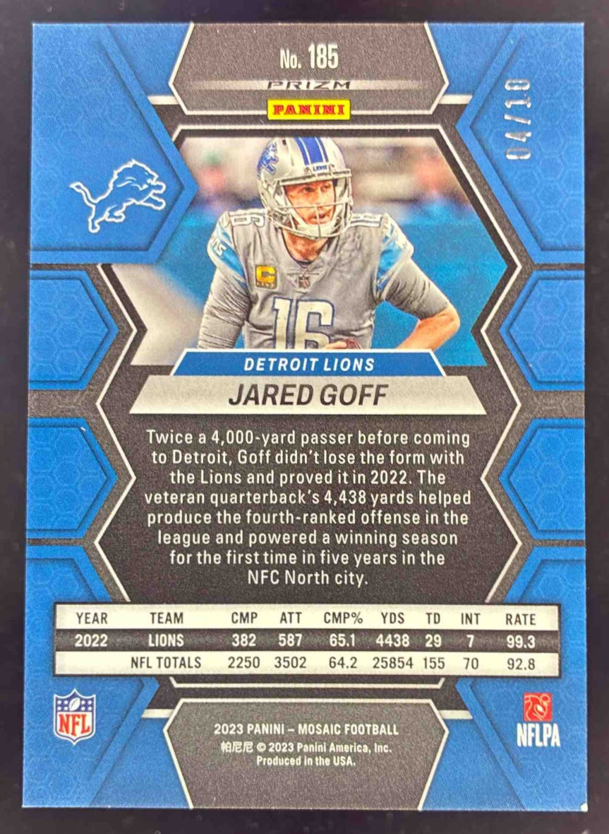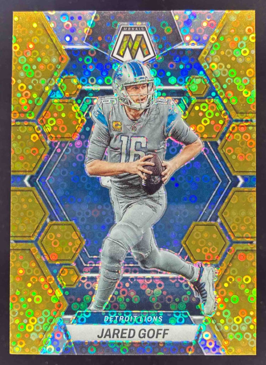 2023 Panini Mosaic Gold No Huddle Mosaic Prizm #185 Jared Goff /10