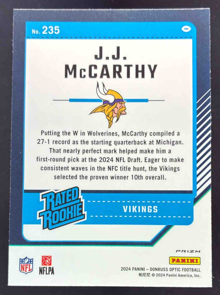 2024 Panini Donruss Optic Purple Scope #235 J.J. McCarthy Rated Rookie