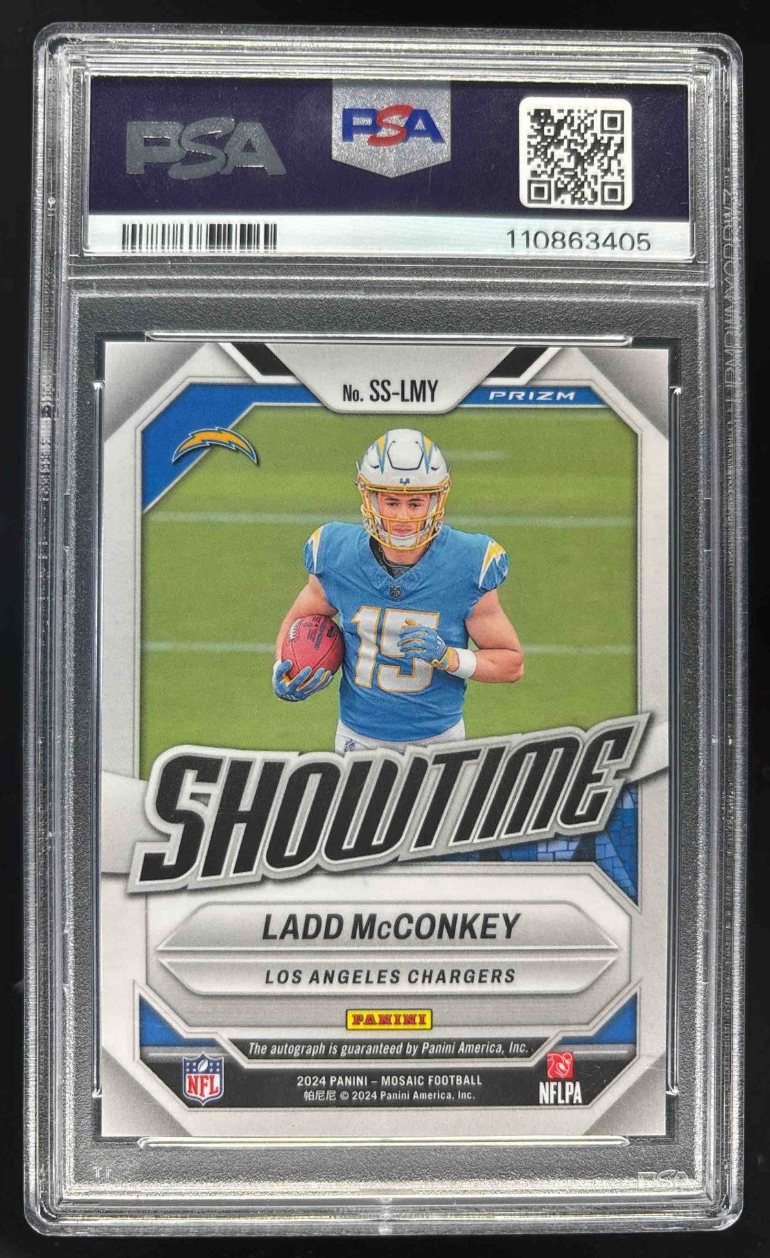 2024 Mosaic Showtime Choice Fusion Red and Yellow Ladd McConkey RC Auto PSA 10
