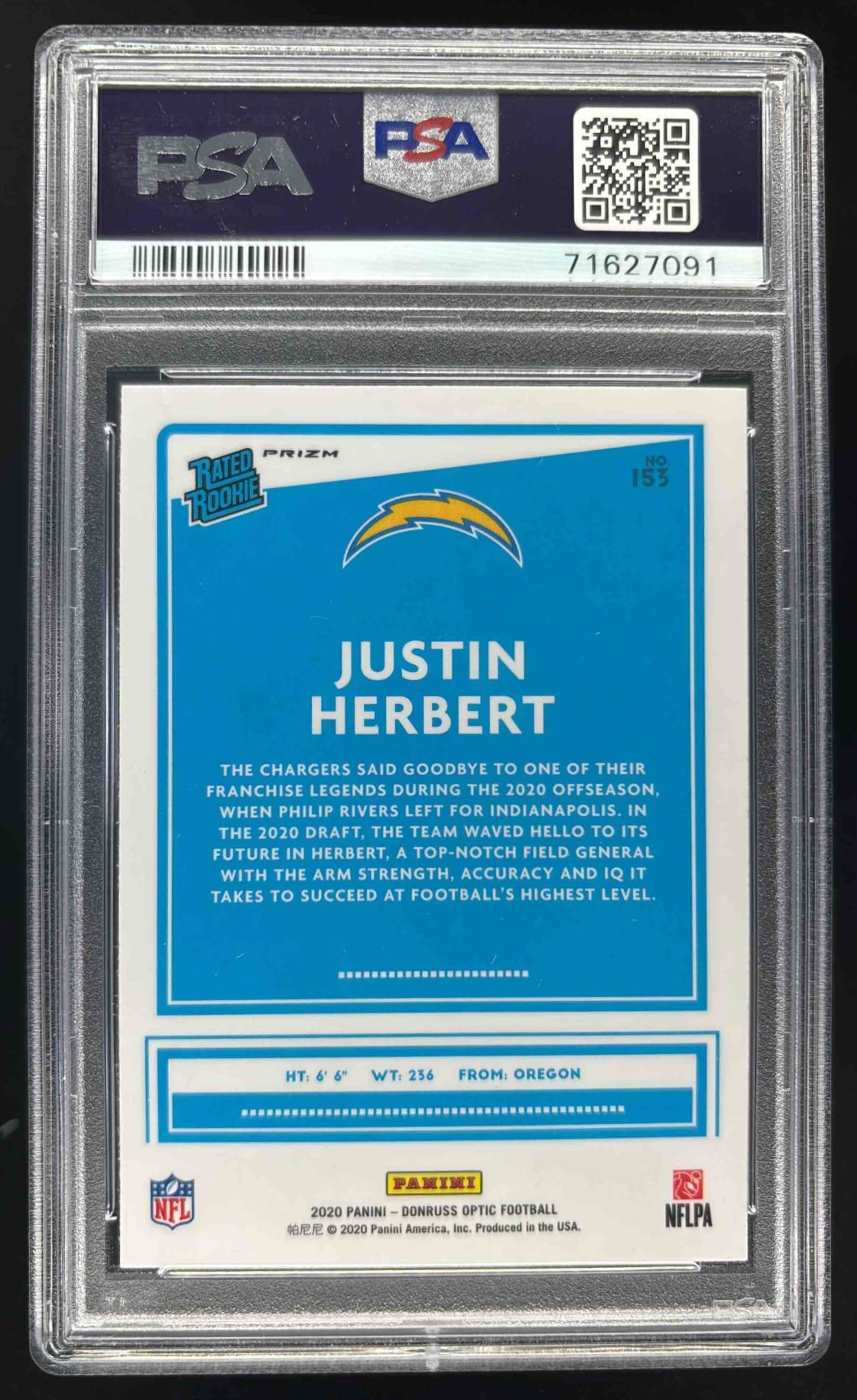 2020 Panini Donruss Optic Pink Prizm #153 Justin Herbert RC PSA 10