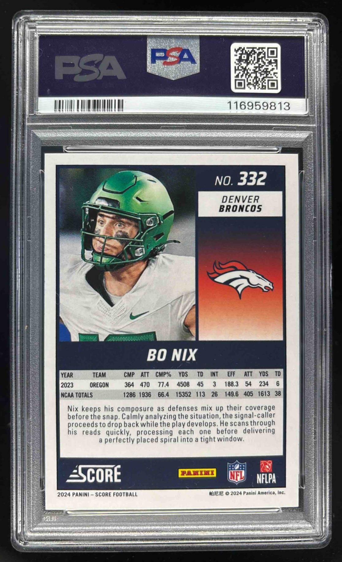 2024 Panini Score #332 Bo Nix RC PSA 10