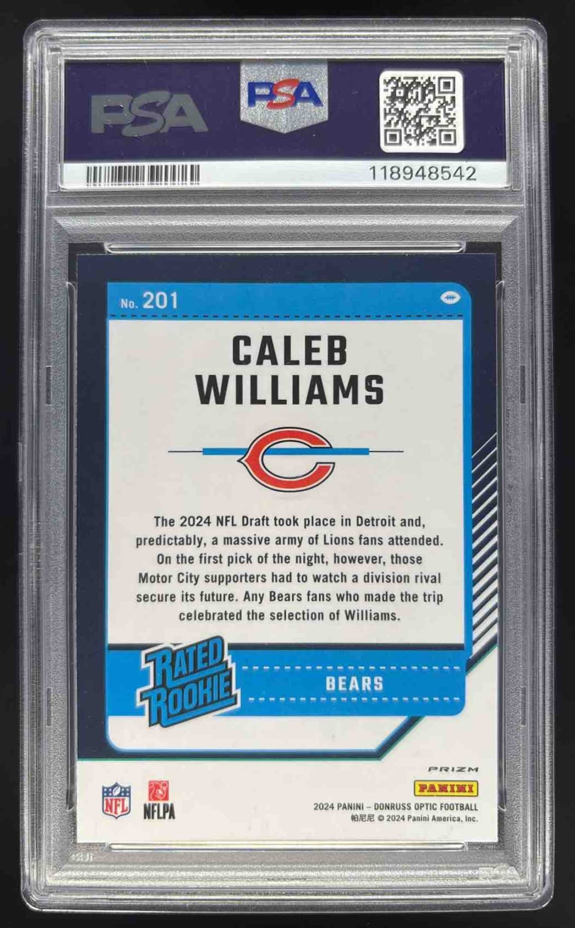 2024 Panini Donruss Optic Purple Shock #201 Caleb Williams Rated Rookie PSA 9