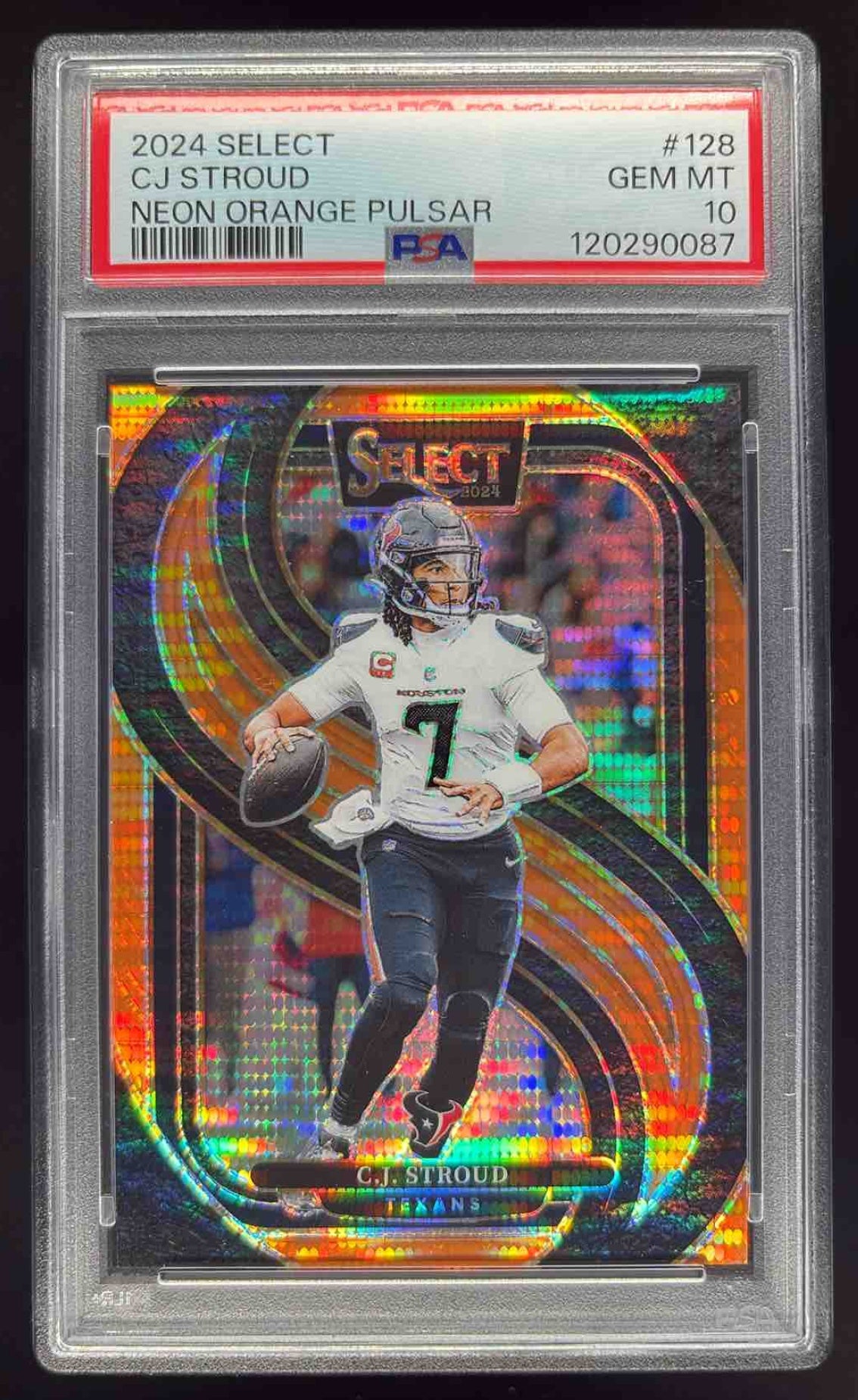 2024 Panini Select Premier Neon Orange Pulsar Prizm #128 C.J. Stroud /7 PSA 10