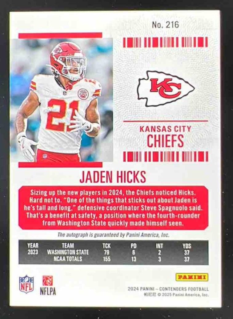 2024 Contenders Rookie Ticket Cracked Ice Ticket #216 Jaden Hicks RC Auto /25