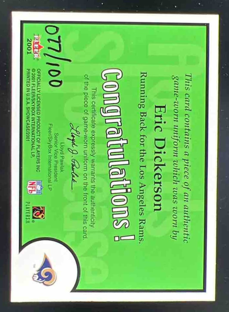 2001 Fleer Showcase Awards Showcase Memorabilia #NNO Eric Dickerson /100