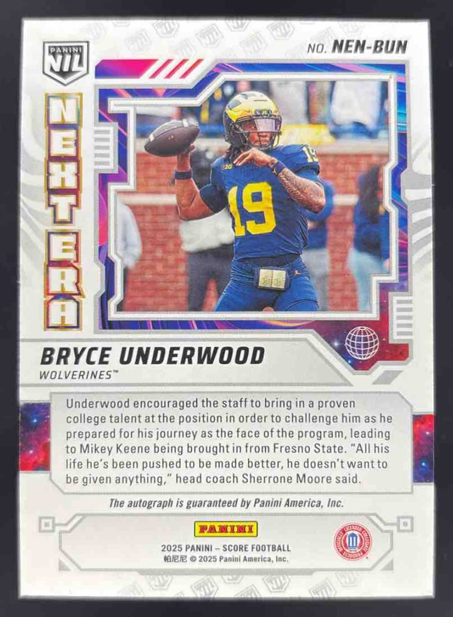 2025 Panini Score Next Era NIL Auto #NEN-BUN Bryce Underwood Auto