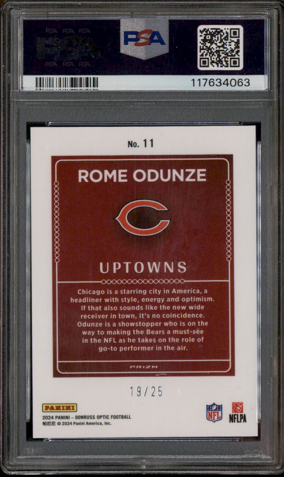 2024 Donruss Optic Uptowns White Pandora #11 Rome Odunze RC /25 PSA 9