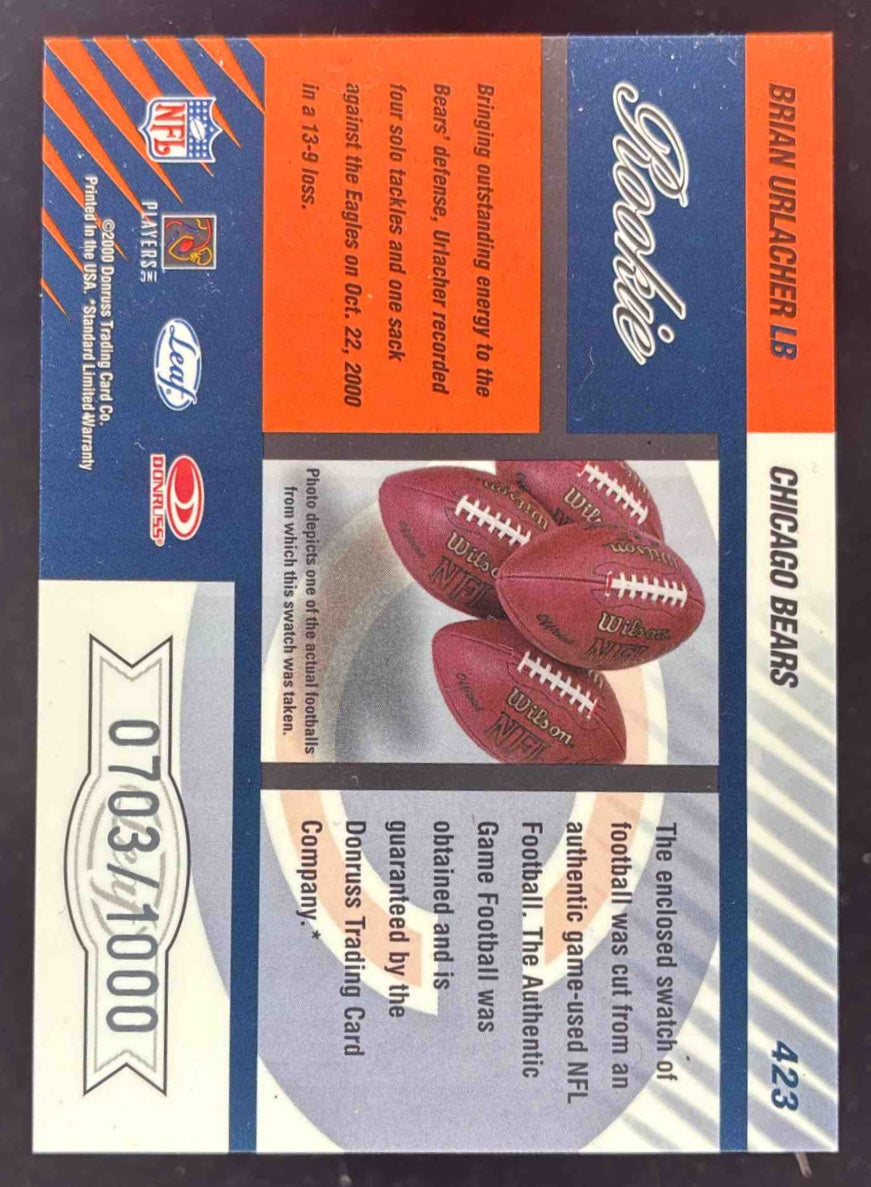 2000 Leaf Limited #423 Brian Urlacher RC /1000