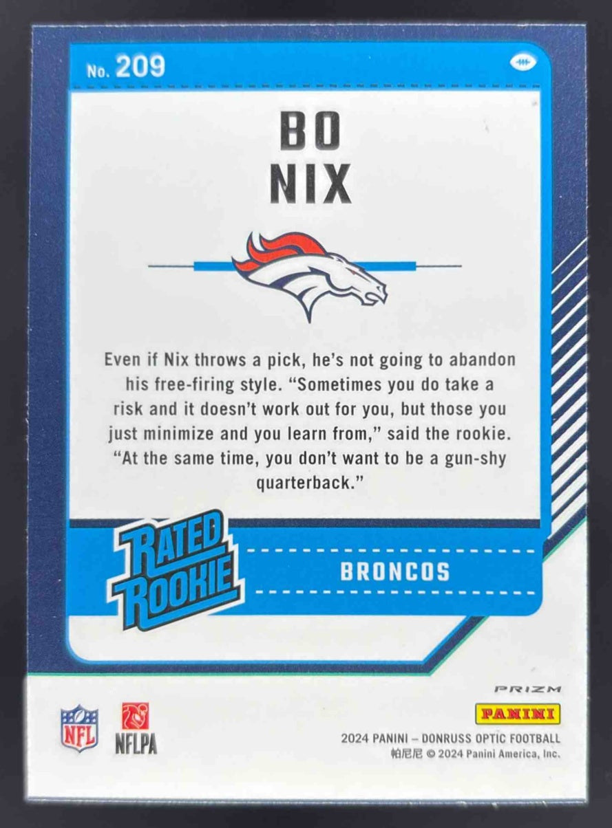 2024 Panini Donruss Optic Blue Hyper #209 Bo Nix Rated Rookie