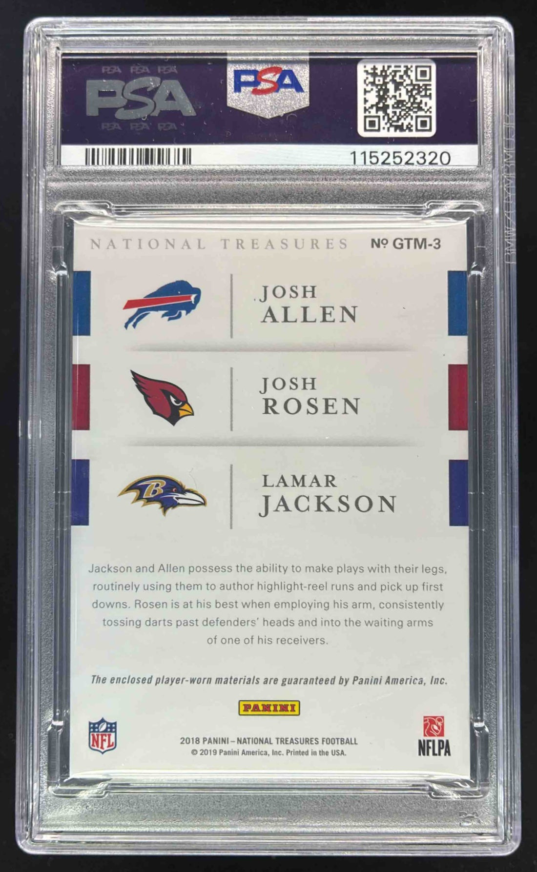 2018 National Treasures Materials Josh Rosen Allen Lamar Jackson RC /99 PSA 4
