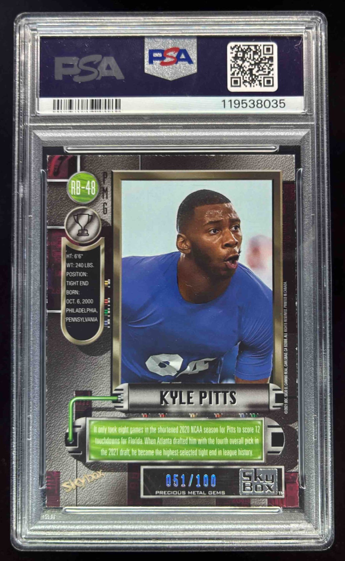 2021 Skybox Metal Universe Champions Red Precious Gems Kyle Pitts /100 PSA 7