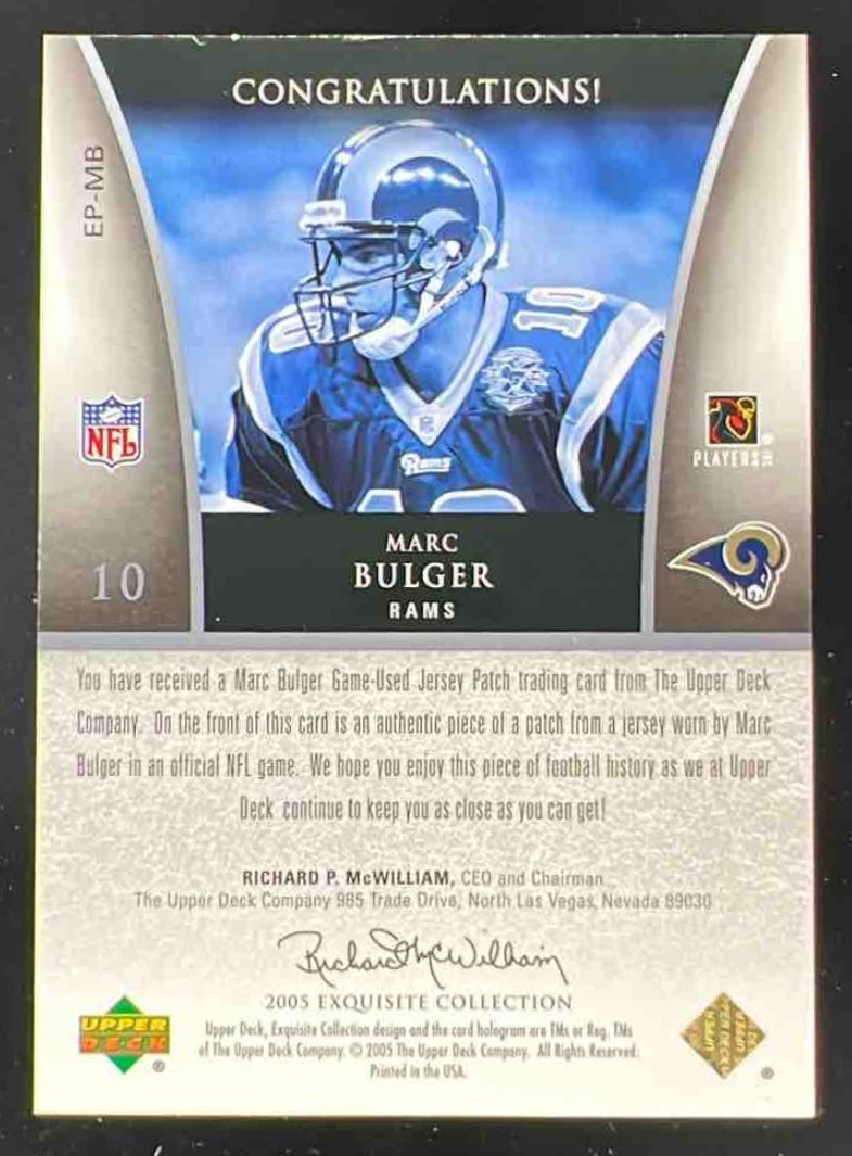 2005 Upper Deck Exquisite Collection Patch Gold #EP-MB Marc Bulger /35