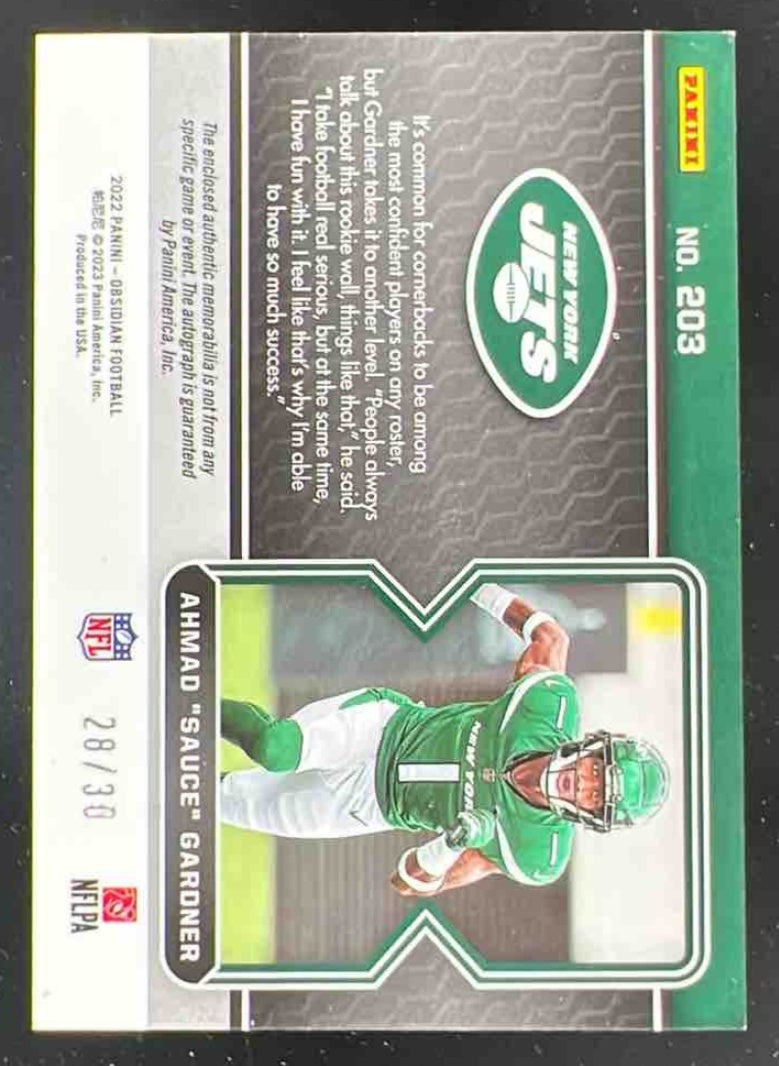 2022 Panini Obsidian Electric Etch Purple #203 Ahmad "Sauce" Gardner RC Auto /30