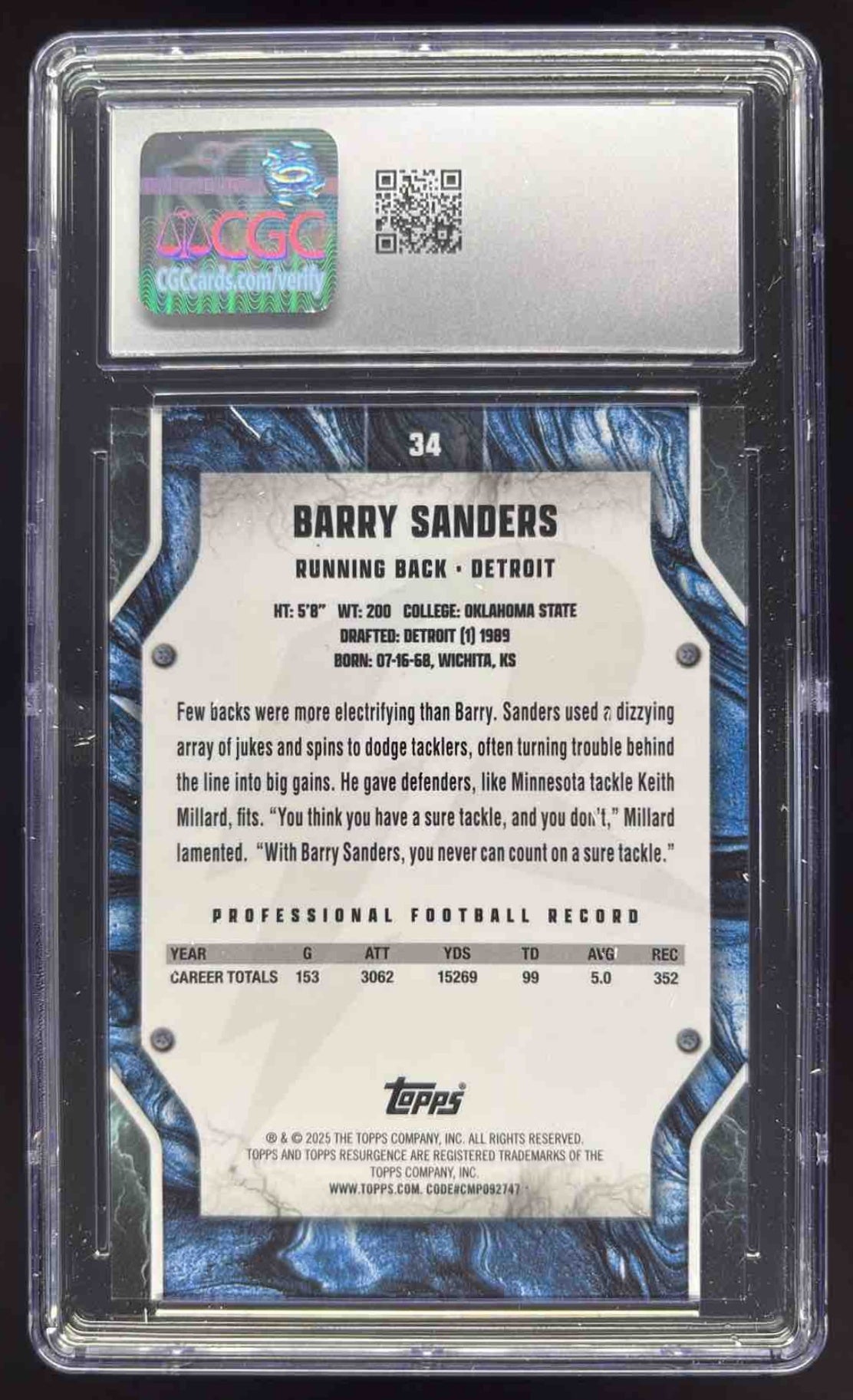 2024 Topps Resurgence Red Static Refractor #34 Barry Sanders /5 CGC 10