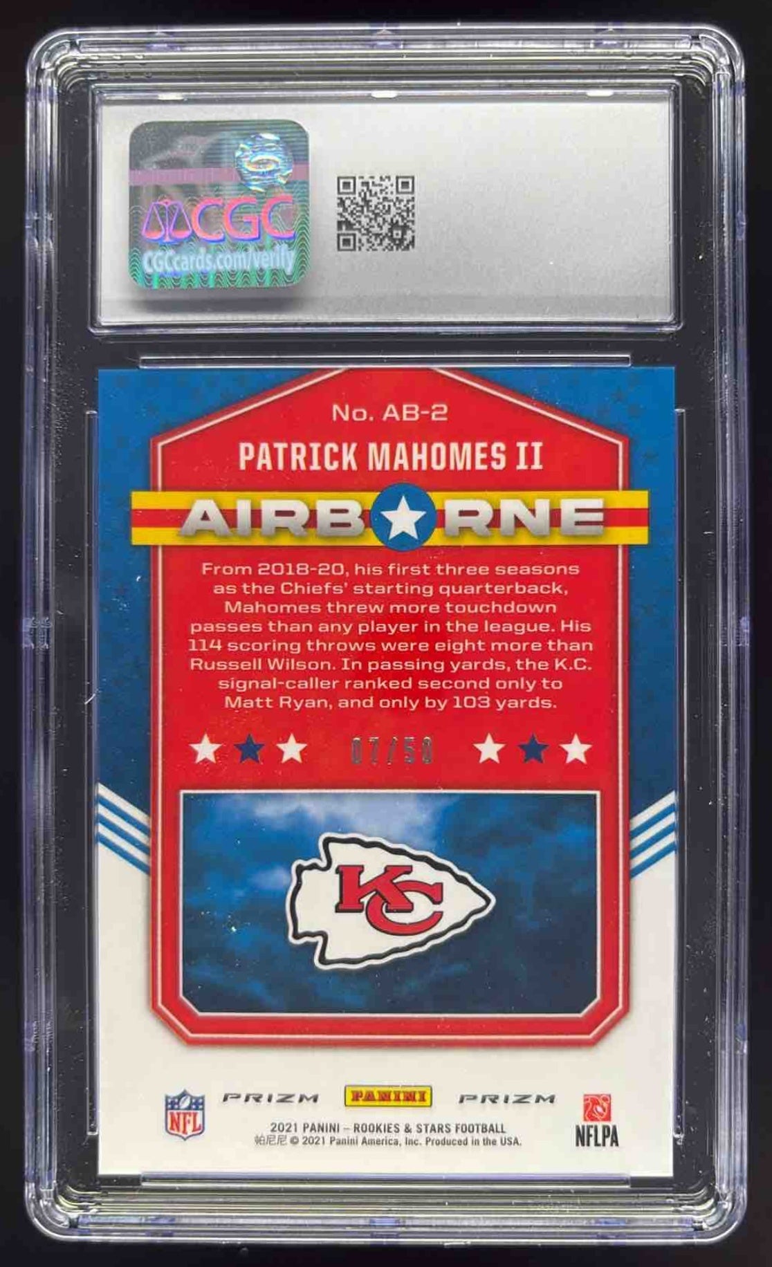 2021 Panini Rookies & Stars Airborne Blue #AB-2 Patrick Mahomes II /50 CGC 10