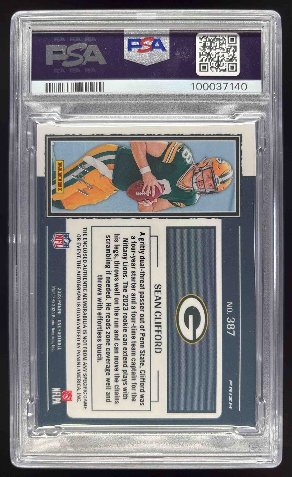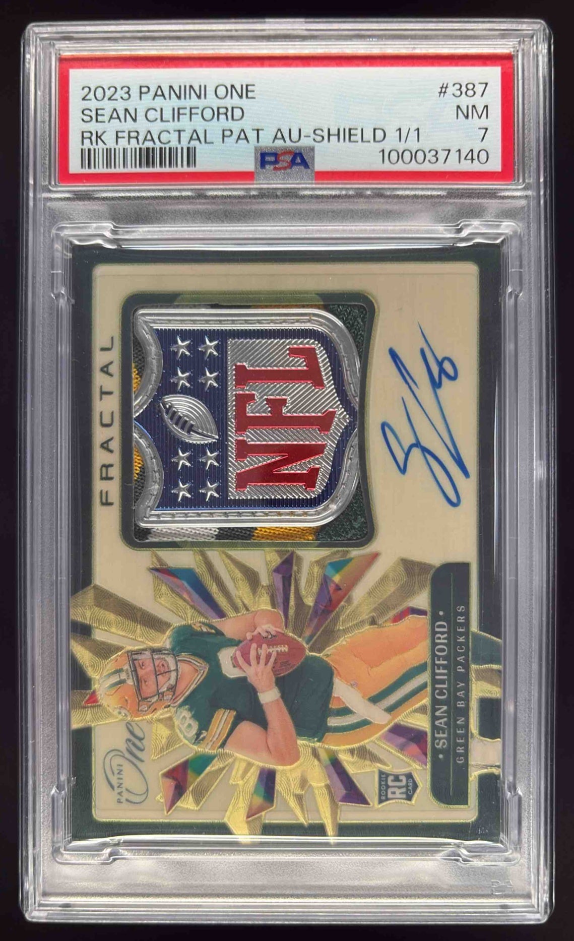 2023 Panini One NFL Shield #387 Sean Clifford RC Rookie Patch Auto 1/1 PSA 7