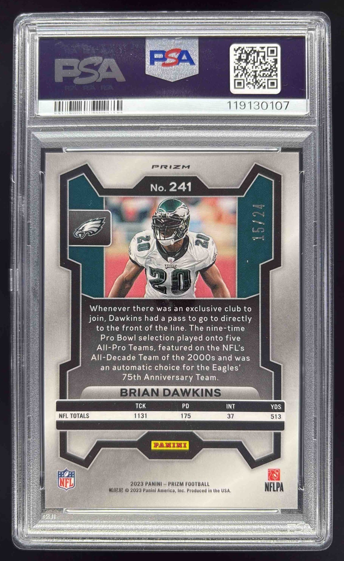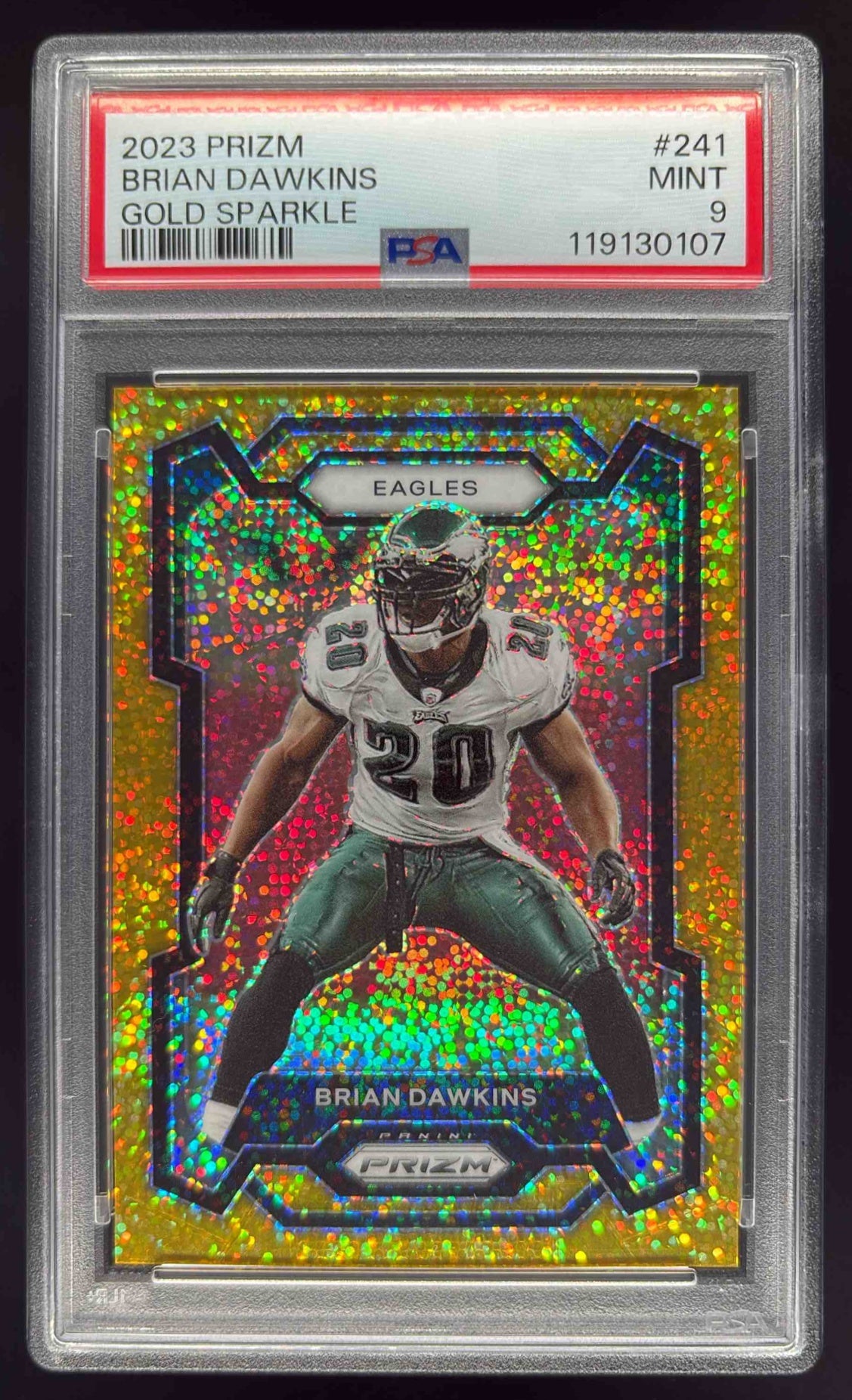 2023 Panini Prizm Gold Sparkle Prizm #241 Brian Dawkins /24 PSA 9