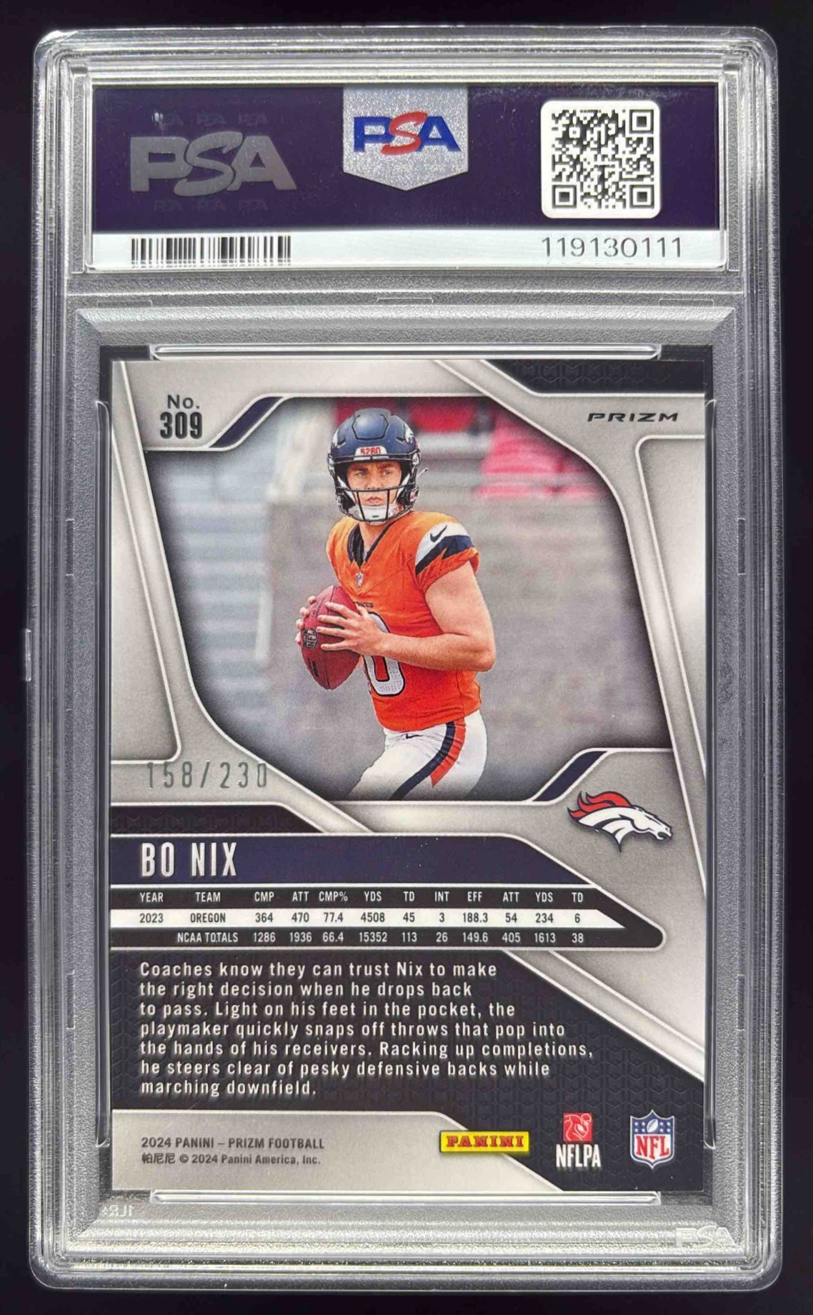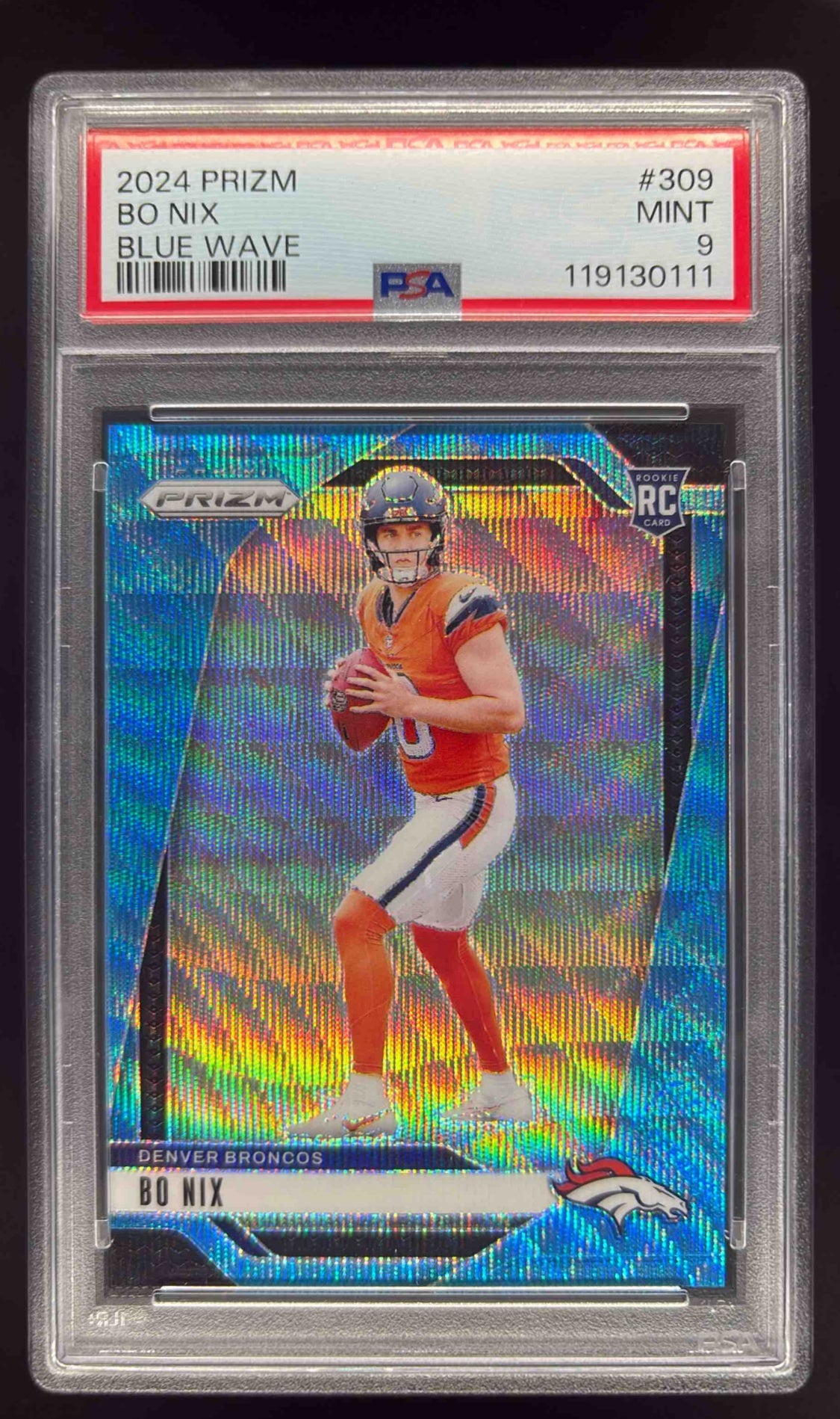 2024 Panini Prizm Blue Wave Prizm #309 Bo Nix RC /230 PSA 9