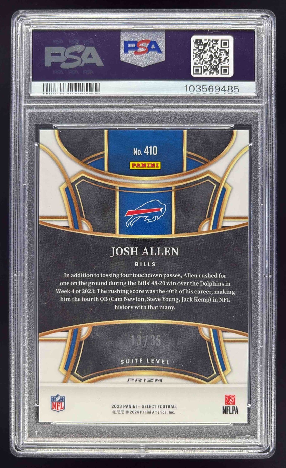 2023 Panini Select White Prizms #410 Josh Allen Suite /35 PSA 10