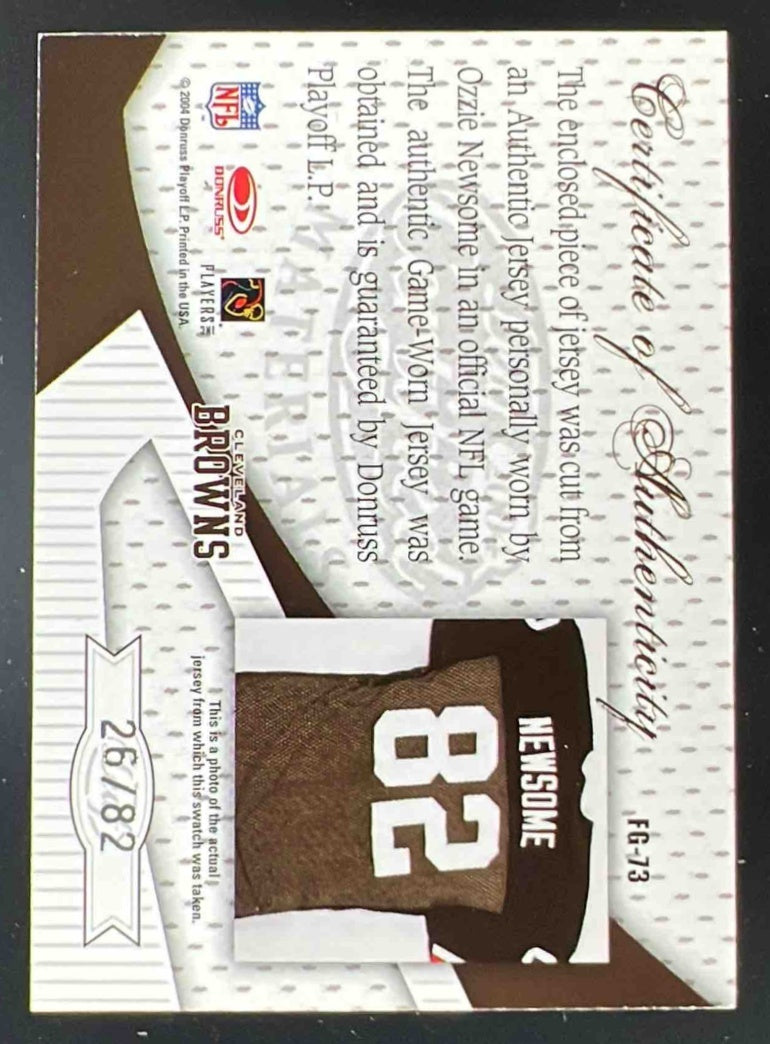 2004 Certified Materials Fabric of the Game Jersey Number Ozzie Newsome Auto /82