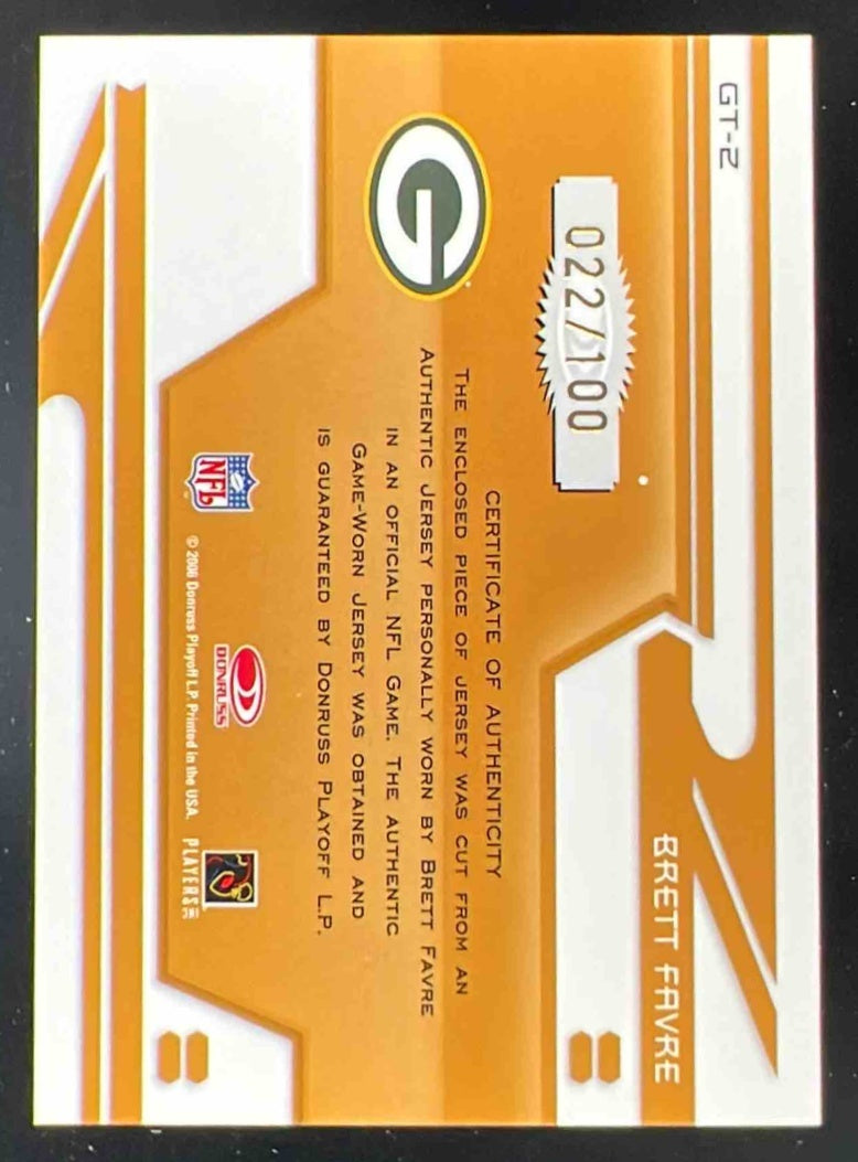 2006 Leaf Certified Materials Gold Team Materials #GT-2 Brett Favre /100