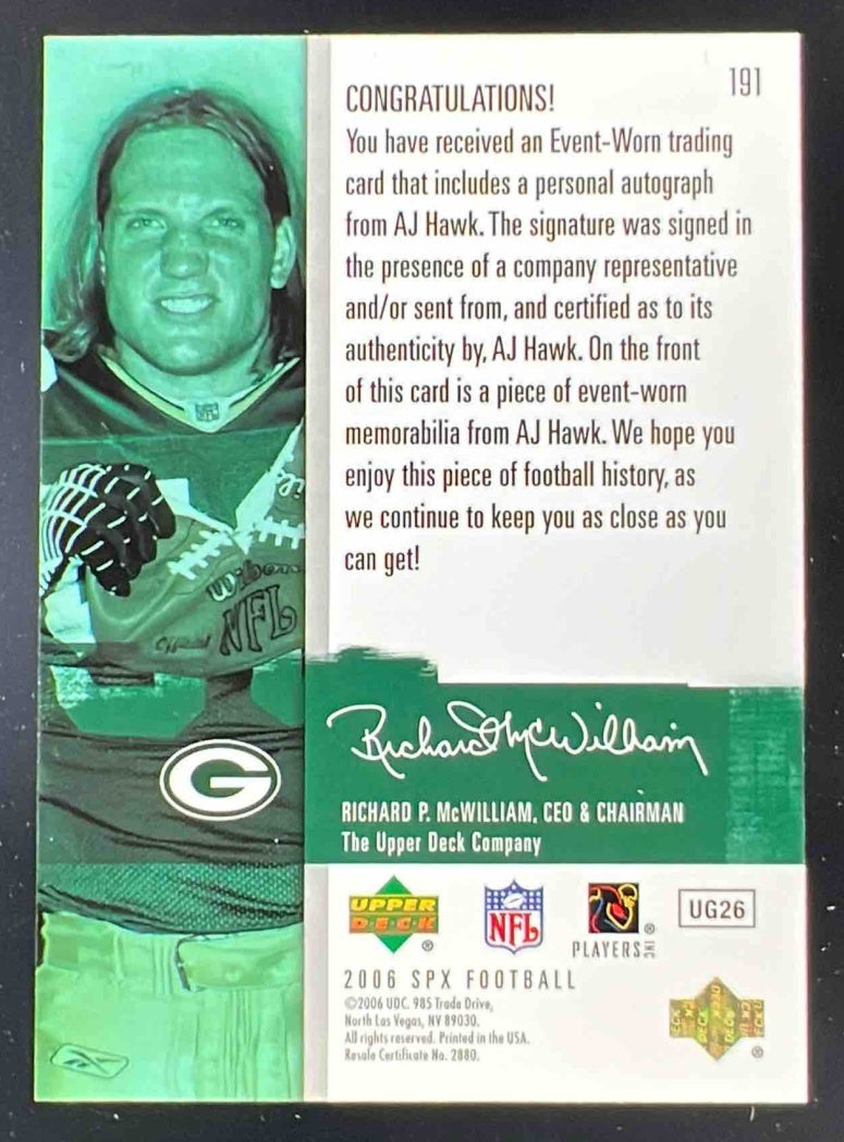 2006 SPx #191 A.J. Hawk Autograph RC Auto /1650
