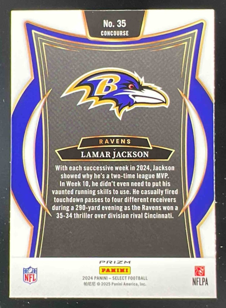 2024 Panini Select Concourse Zebra Prizm Shock #35 Lamar Jackson
