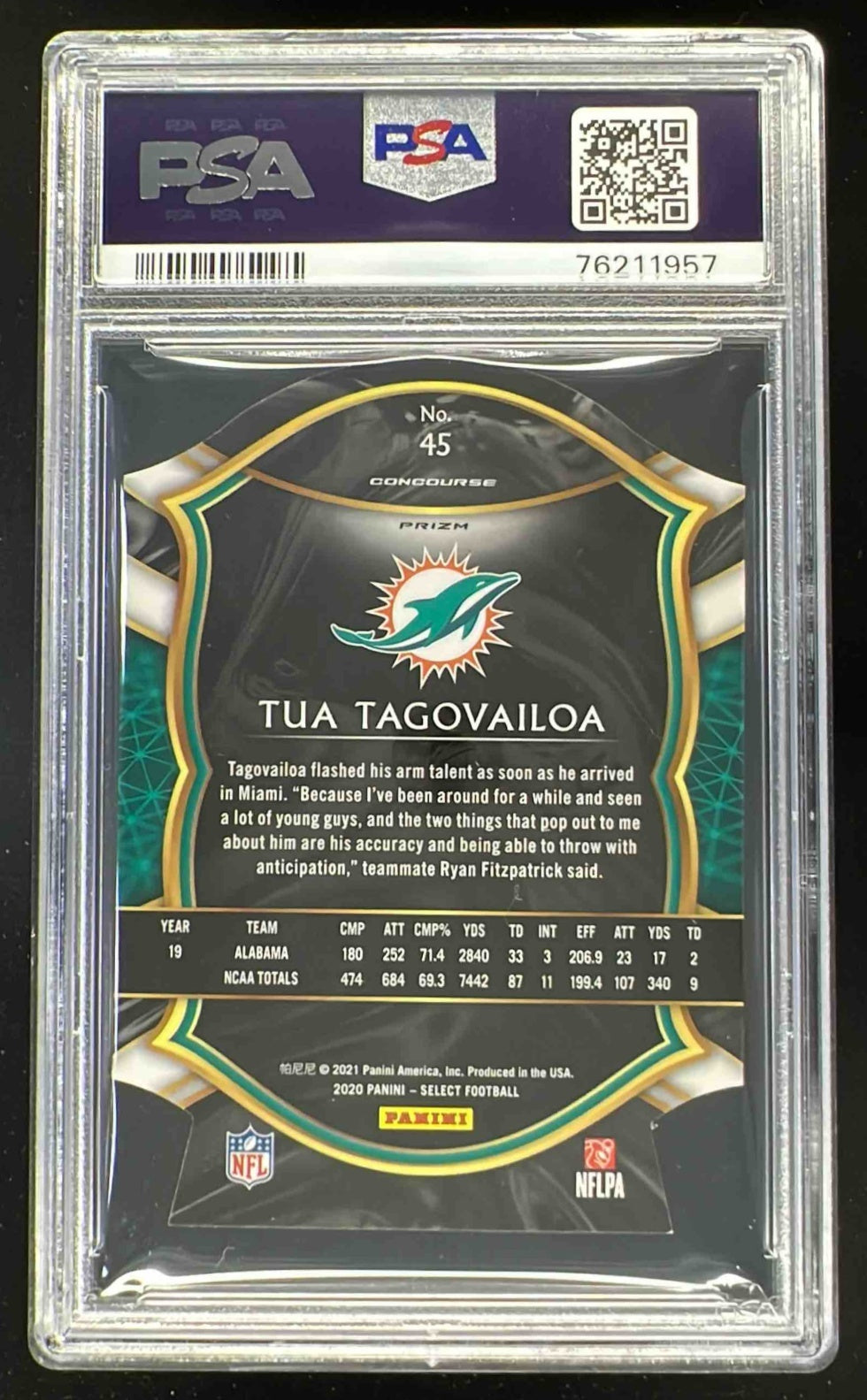 2020 Panini Select Blue Prizm Die Cut #45 Tua Tagovailoa RC Concourse PSA 9