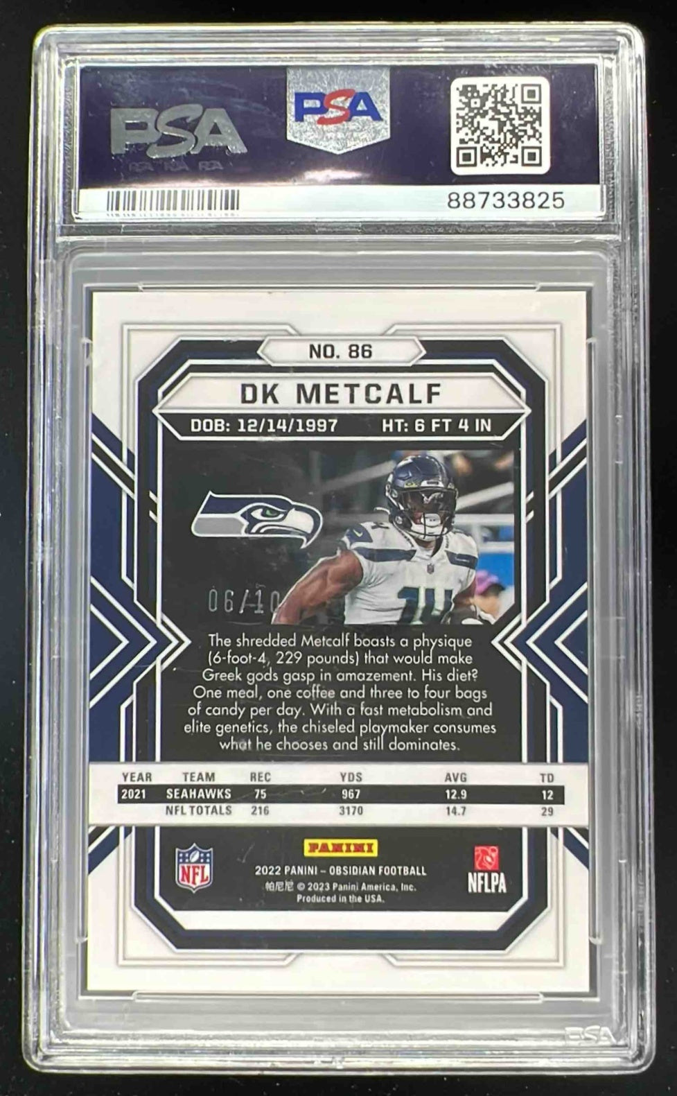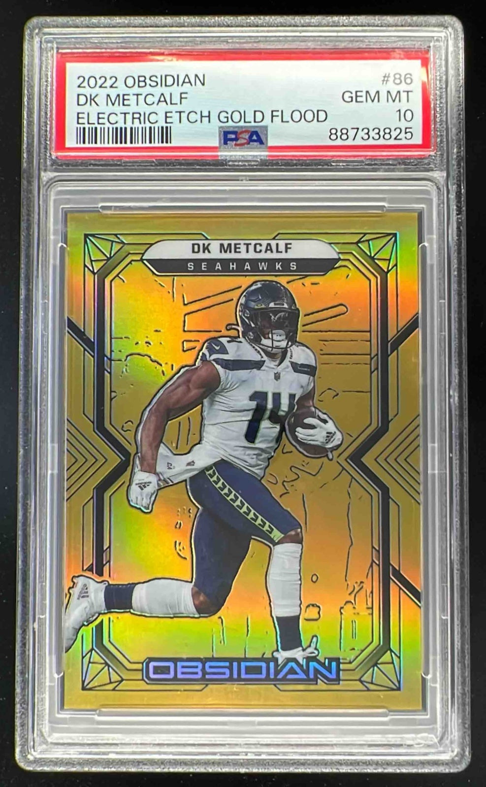 2022 Panini Obsidian Electric Etch Gold Flood #86 DK Metcalf /10 PSA 10