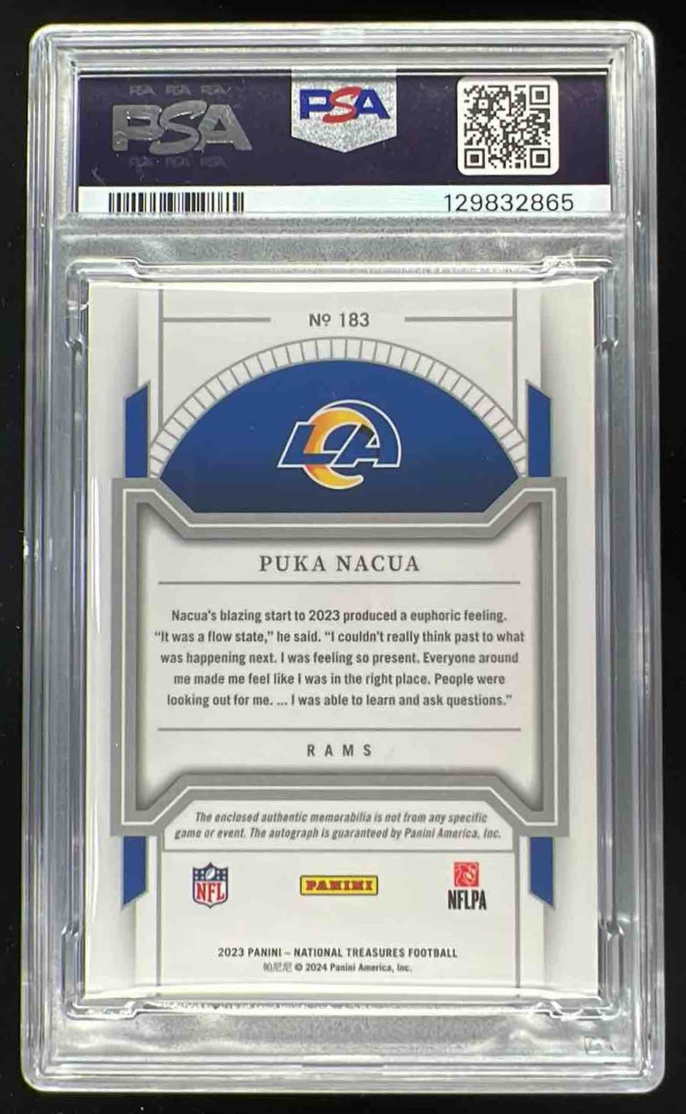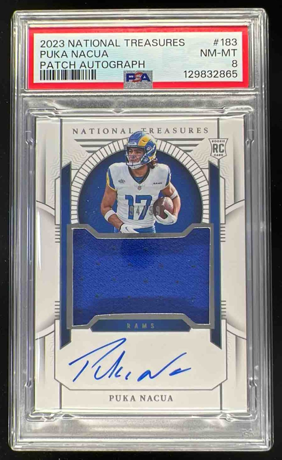 2023 Panini National Treasures #183 Puka Nacua Autograph RC Auto /99 PSA 8