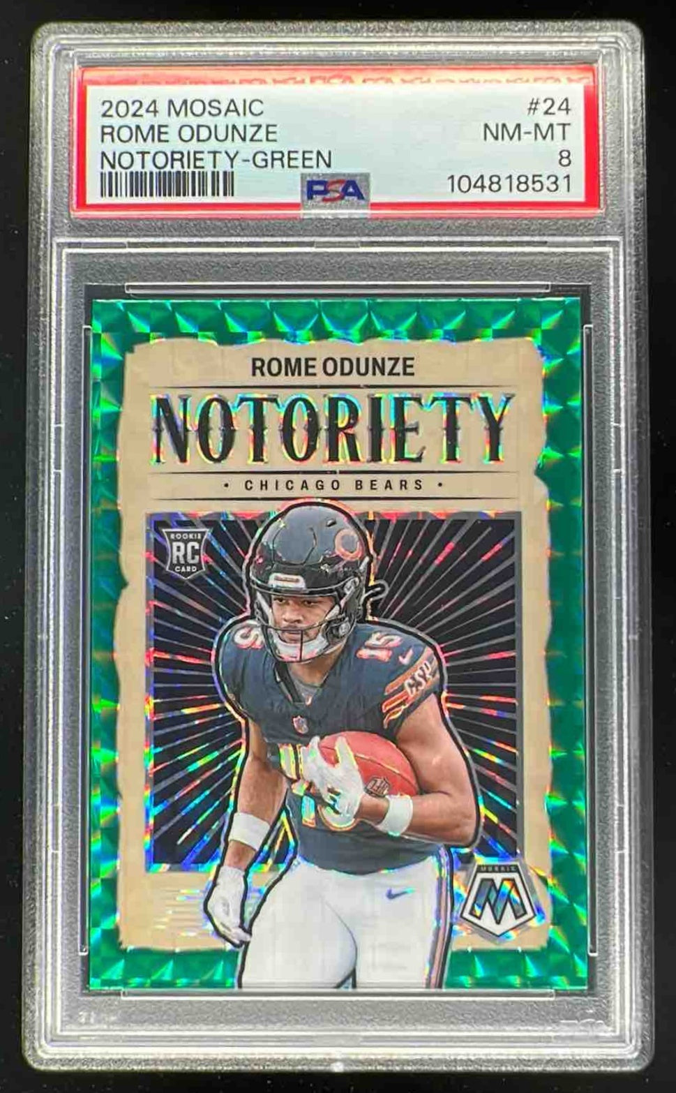 2024 Panini Mosaic Notoriety Green #24 Rome Odunze RC PSA 8
