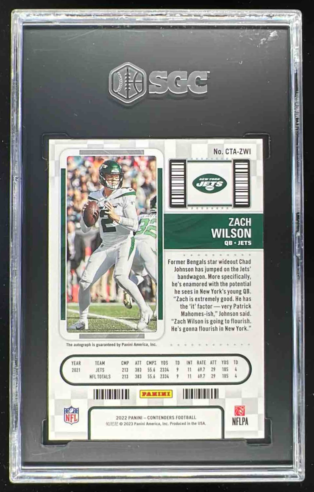 2022 Contenders Veteran Ticket Auto Championship Ticket Zach Wilson /25 SGC 9